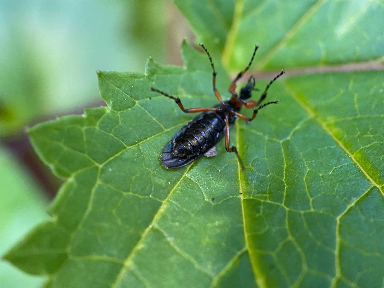 Later, I spot another male on the back of a Blackberry leaf. I have never seen so many males of this species. This must be their mating season when the males are out and about in search of mature females.