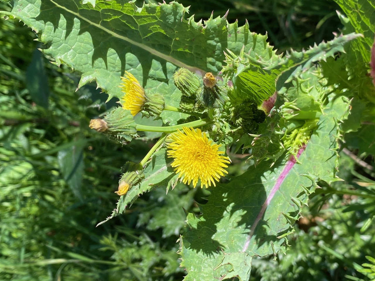This Sow Thistle has started to bloom. The plant is not a real “thistle” – it has all ray flowers. The flowerheads look like dandelions on steroid.