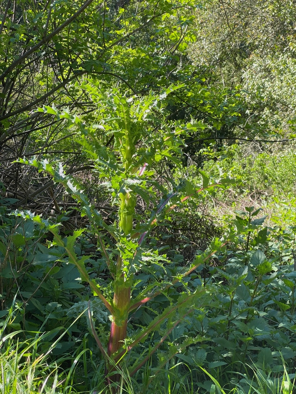 Huge Sow Thistles, Sonchus oleraceus have grown up in the areas cleared of brushes last year. Some of them have stems the diameter of my arm!