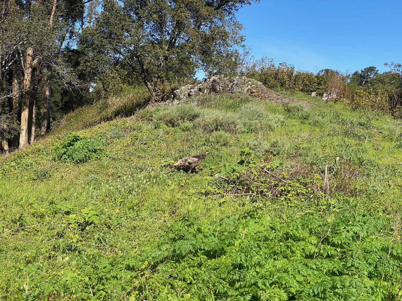 I have company up here! A female Wild Turkey is walking calmly among the plants, minding her own business. Encounters with two vertebrate wildlife species within minutes of leaving my car – it’s my lucky day!