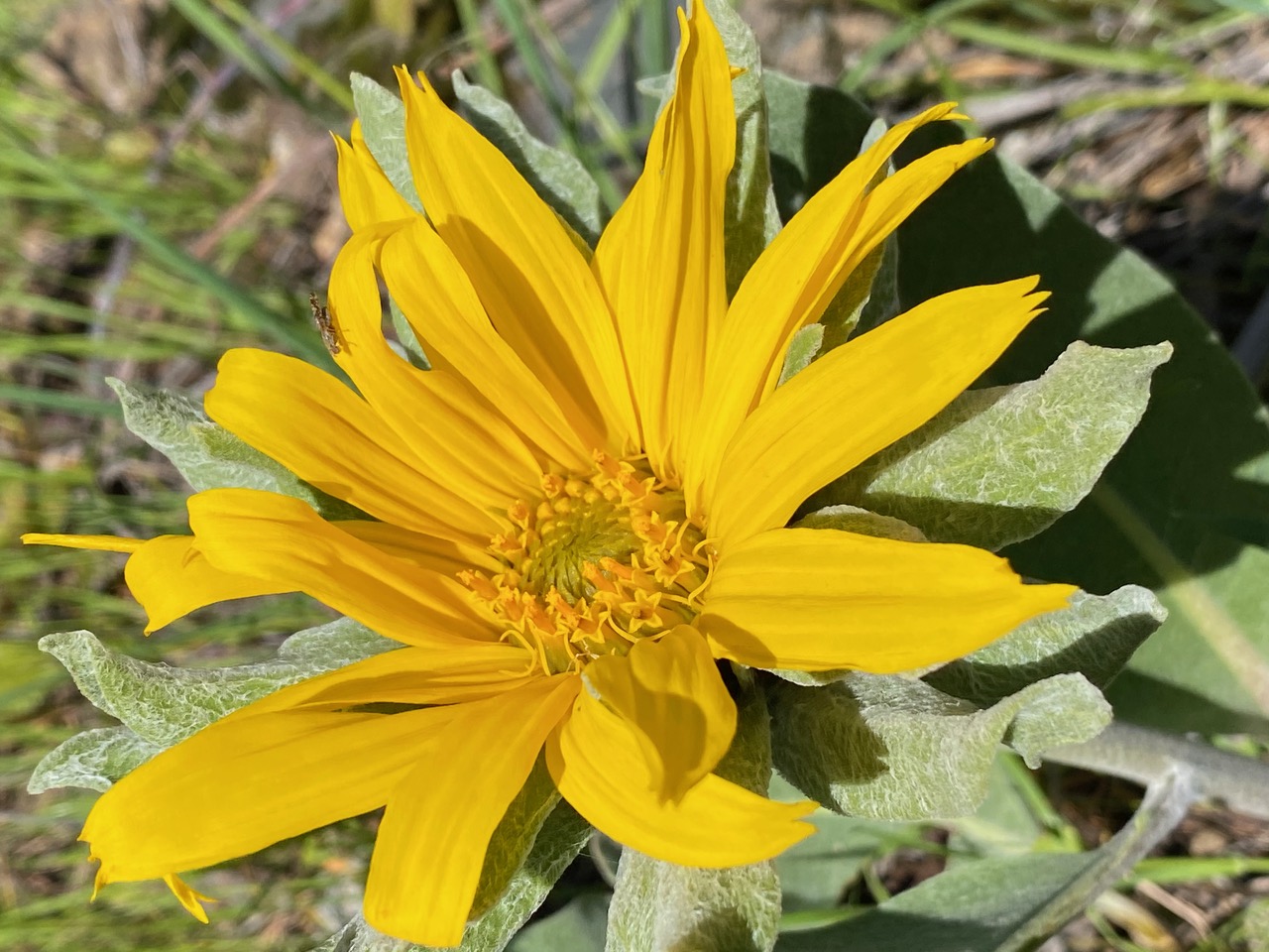 Close-up of the Sunflower Seed Maggot Fly. Since the wings are covering its abdomen, I can’t tell its gender. We’ll be seeing more of these flies as the Wyethia season progresses.