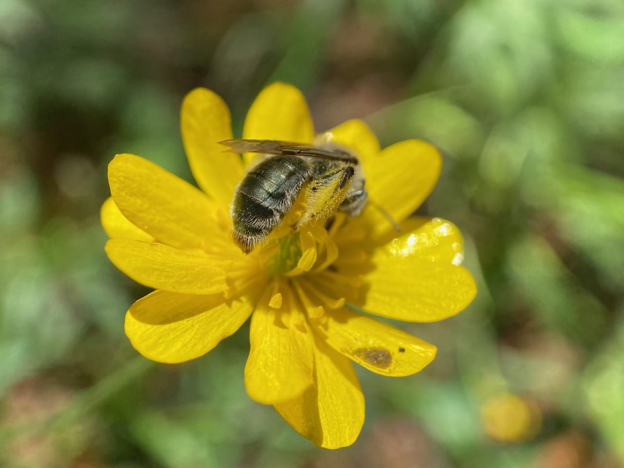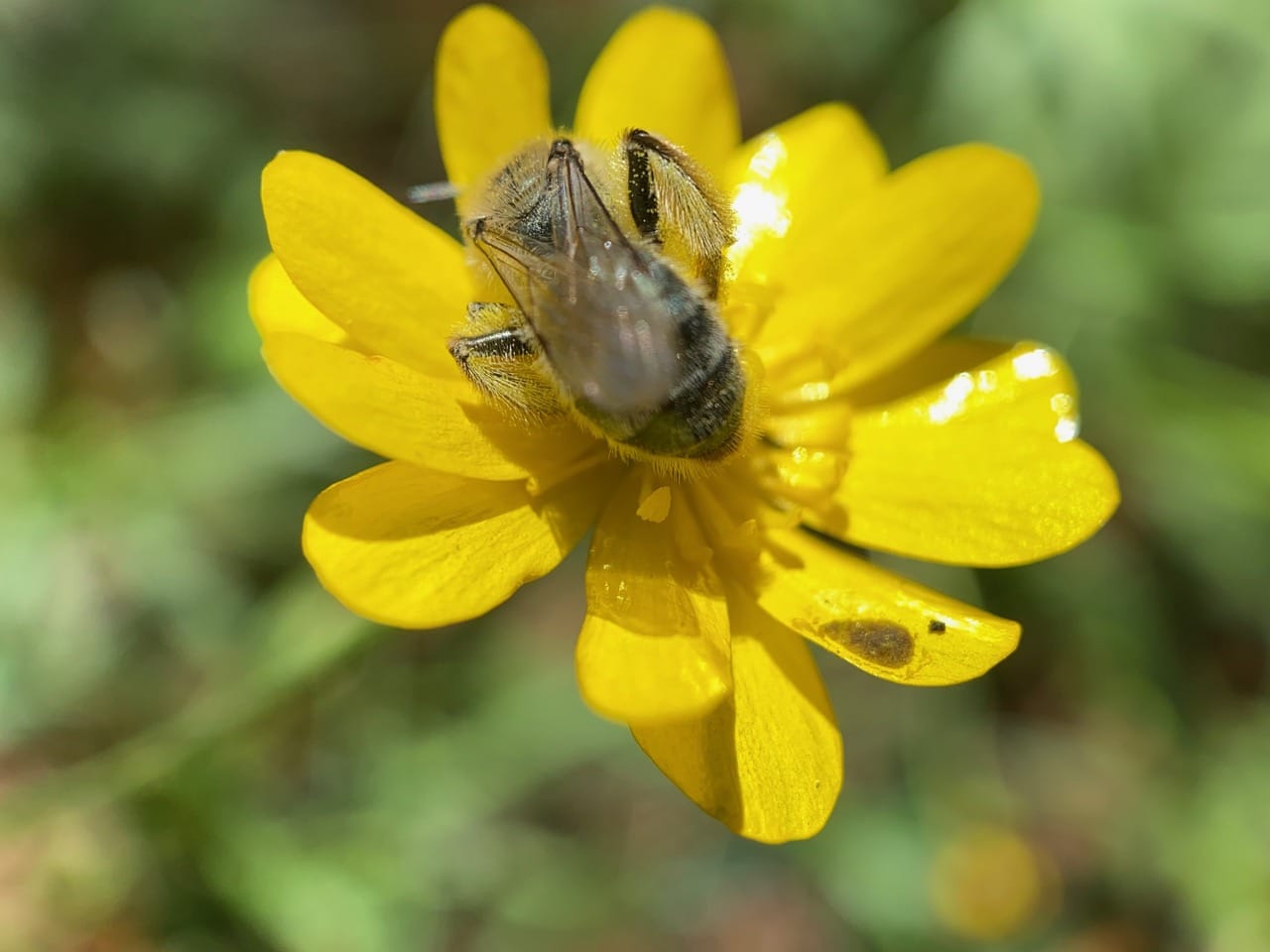Here’s another Andrena collecting pollen on a buttercup flower.