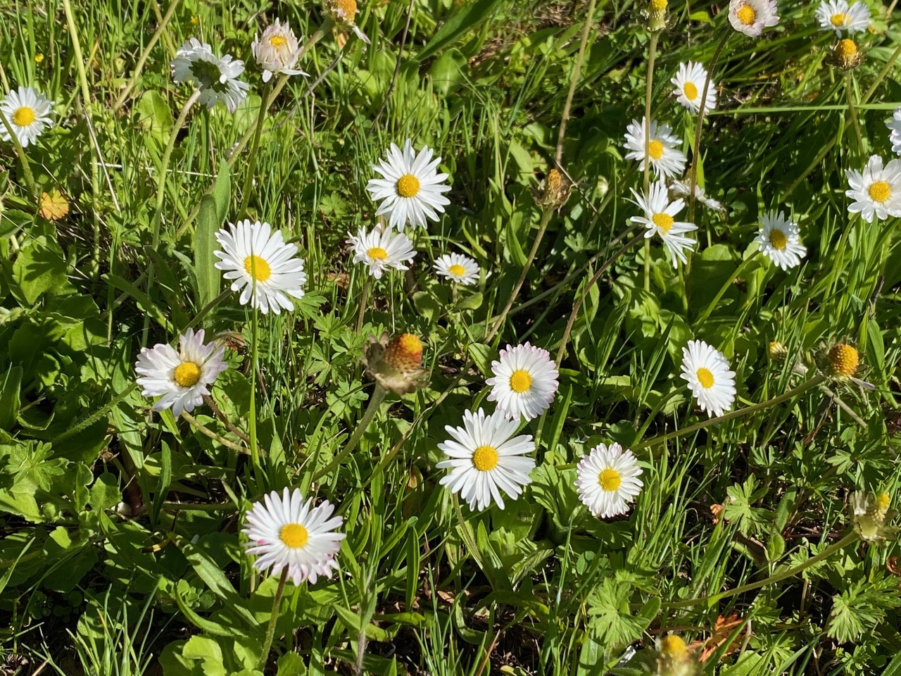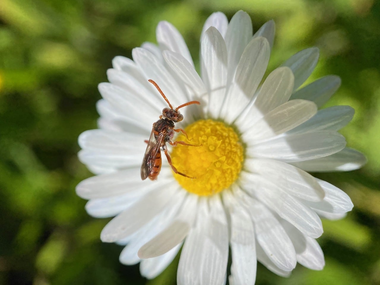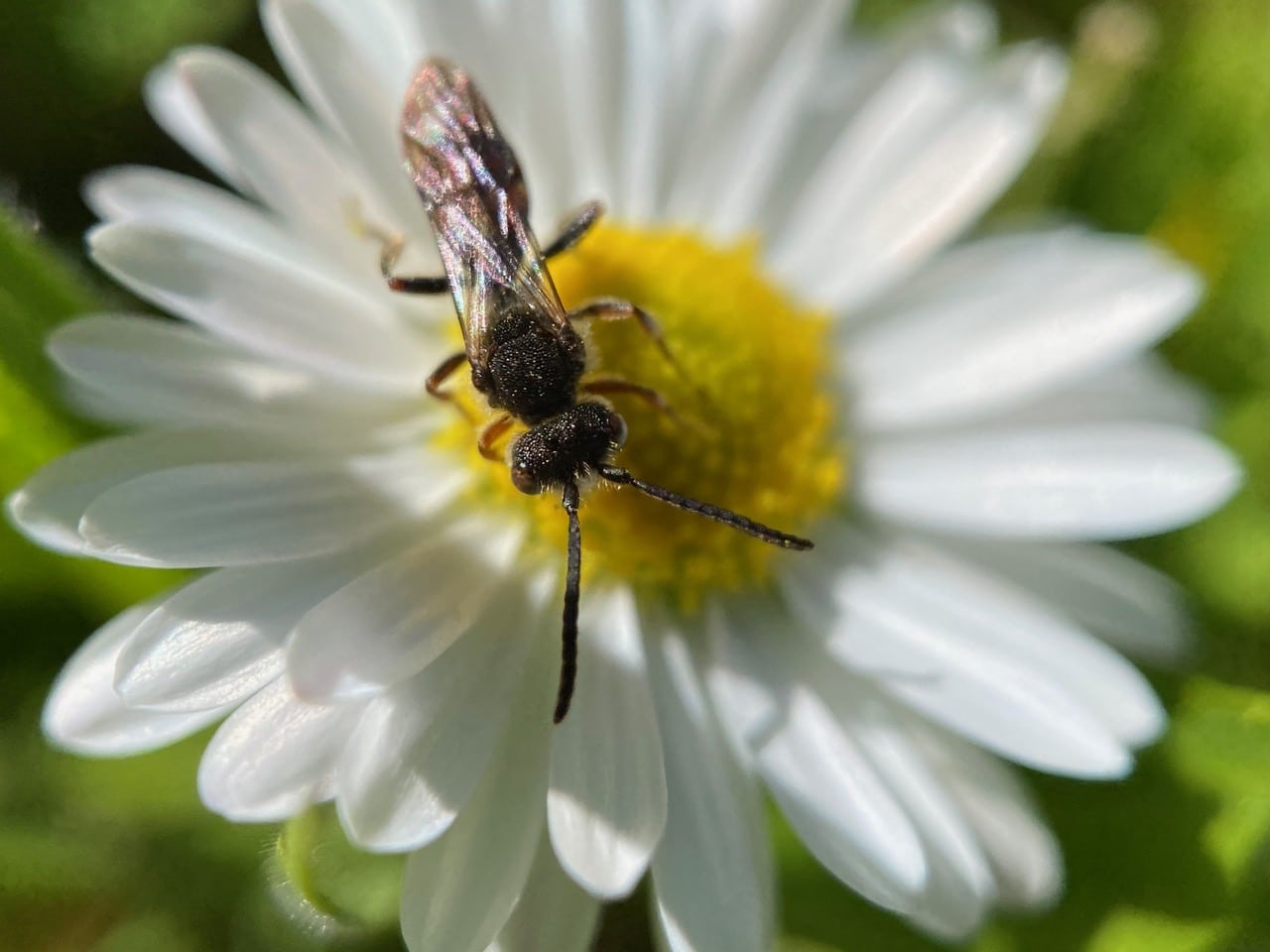 Back at the Padre picnic area, I see many insects visiting the English Daisies on the lawn around the picnic table.