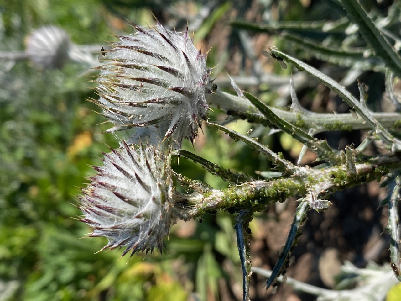 Wow, this Cobweb Thistle, Cirsium occidentale is heavily infested with Thistle Aphids, Brachycaudus cardui (family Aphididae).
