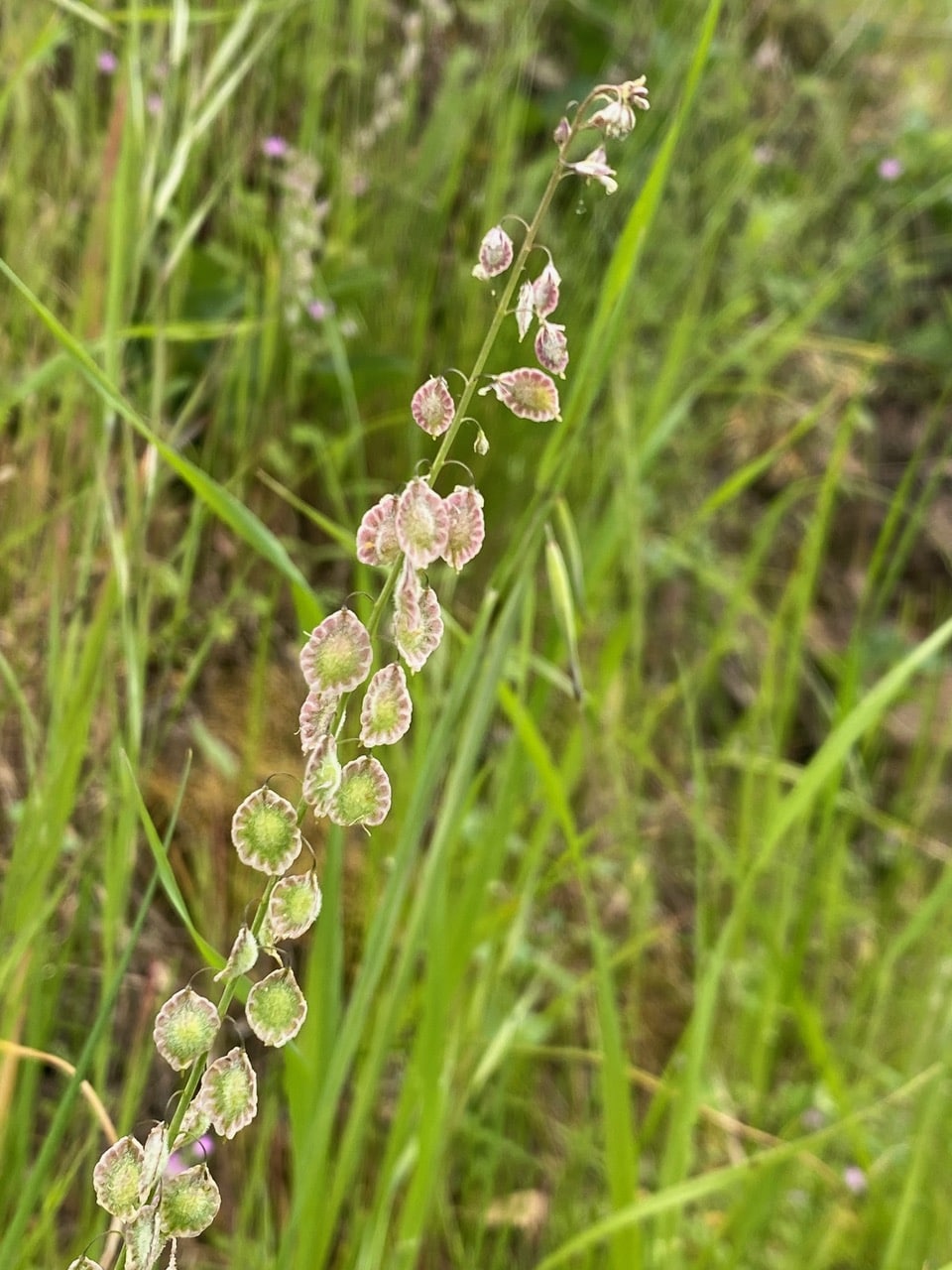 Almost invisible among the grasses on the steep hillside, the tiny Fringe Pod, Thysanocarpus curvipes are already setting seeds.