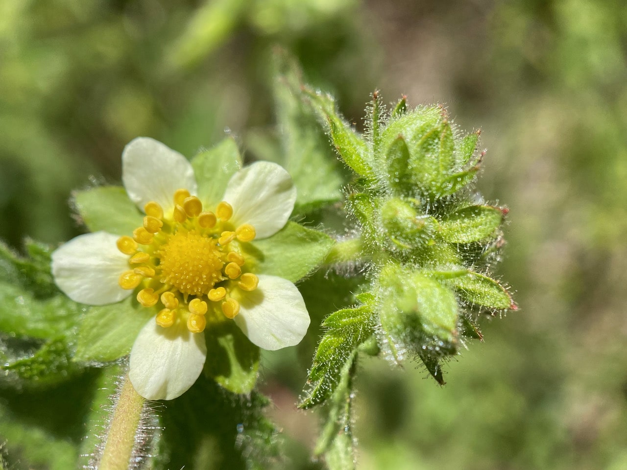 The Sticky Cinquefoil, Drymocallis glandulosa is blooming beautifully. This humble member of the rose family seems to attract quite a few small insects.