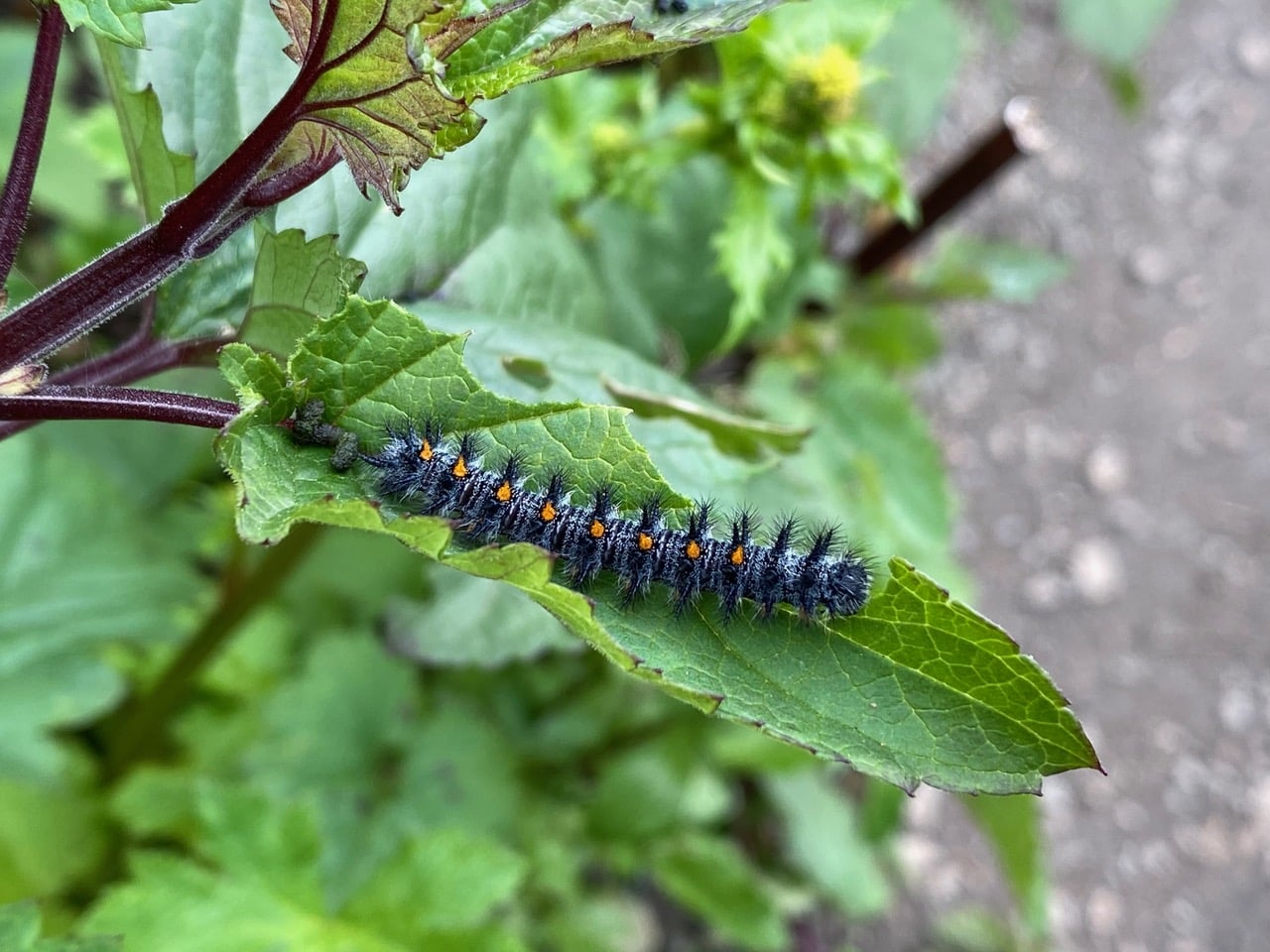 This seems to be a good year for the Variable Checkerspot butterfly. There is an abundance of the caterpillars on the California Bee Plant, Scrophularia californica. They are growing big and magnificent on their host plants. I will miss them when they wander off to pupate hidden from sight.