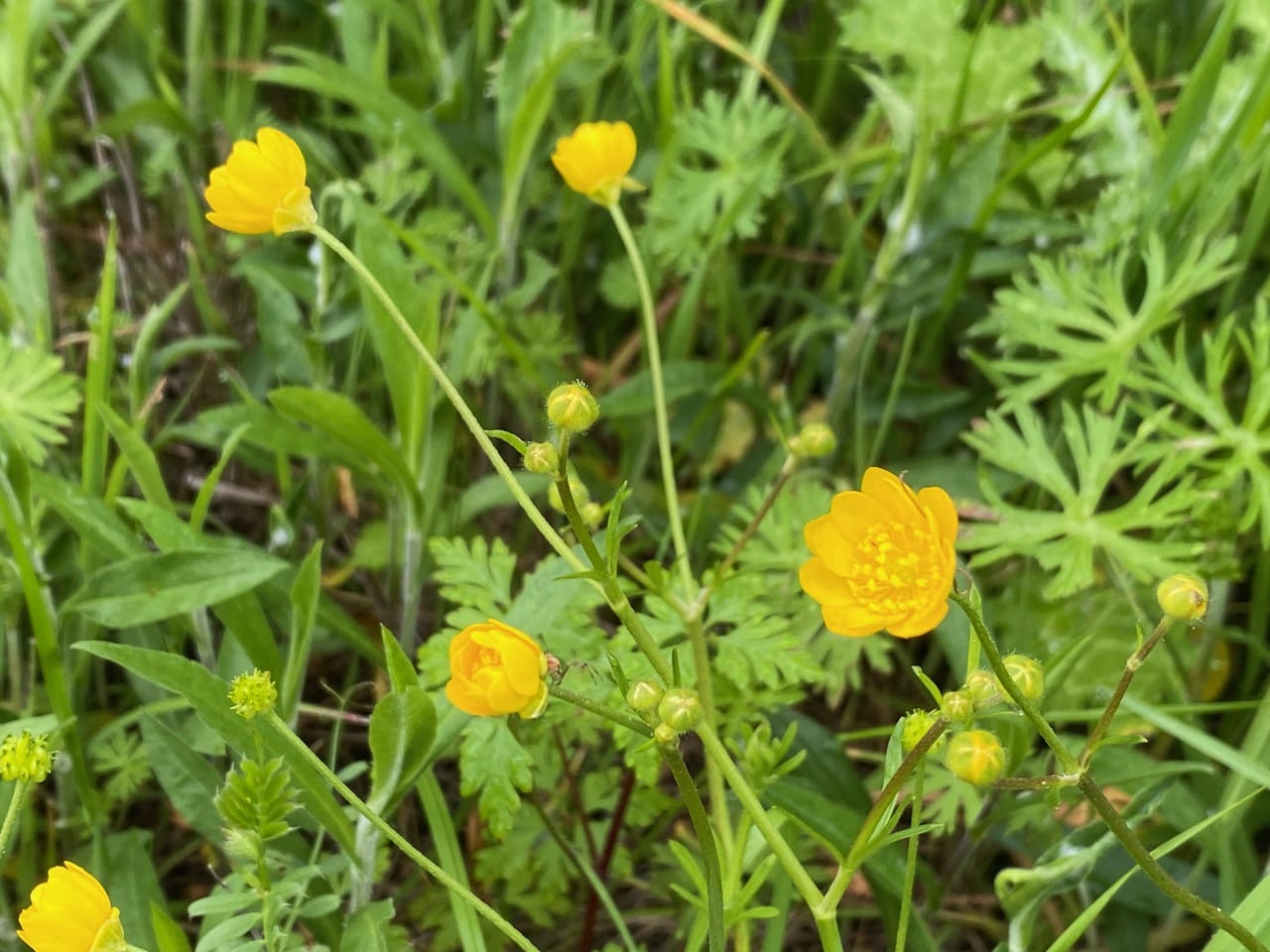 I have never known that buttercup flowers close up at night. This morning, most of them are still half closed at 9 am.