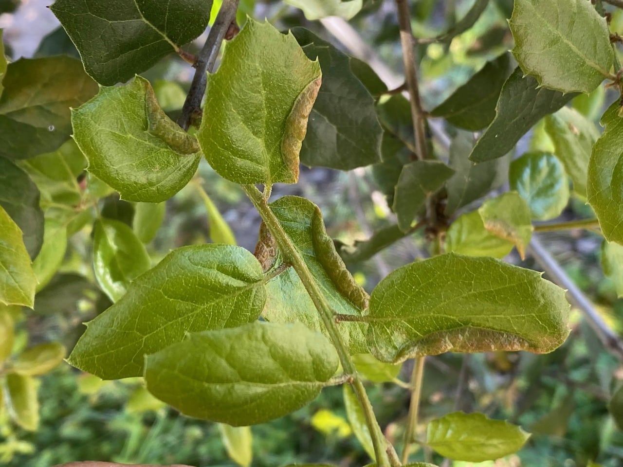 There are several of the leaf-fold galls on these young terminal leaves of the oak tree.