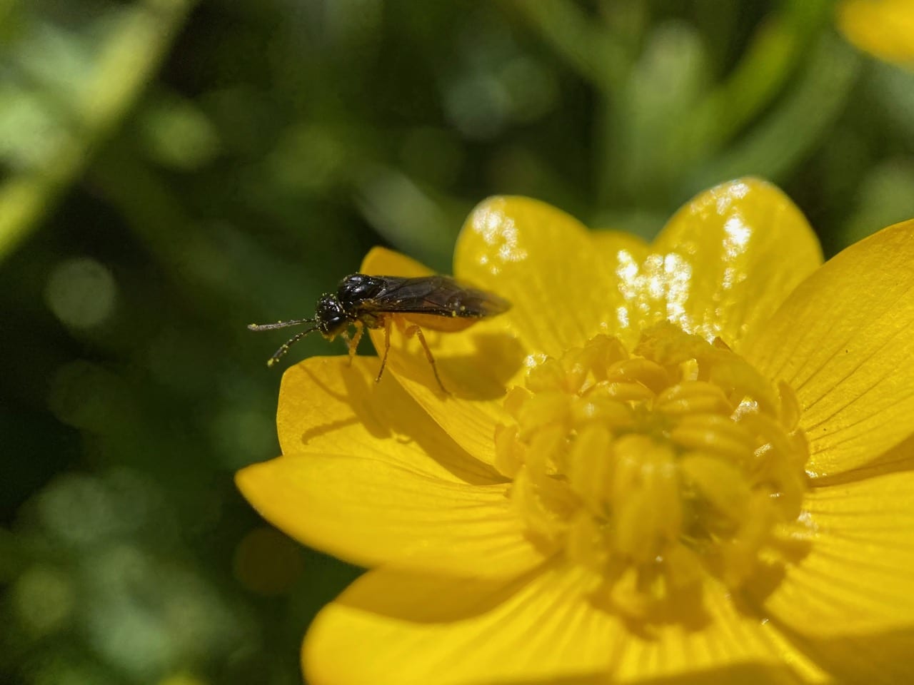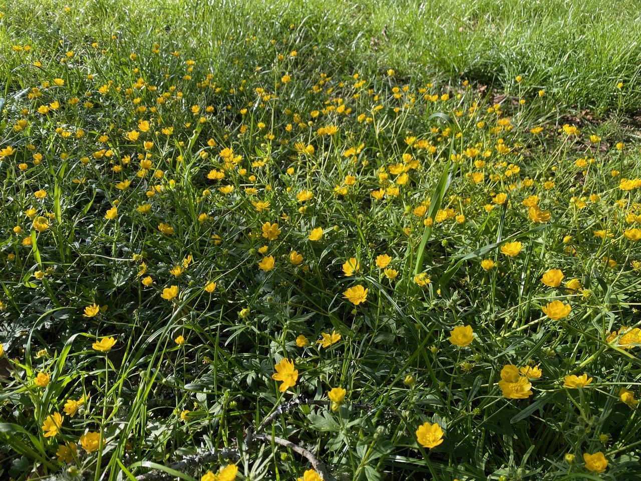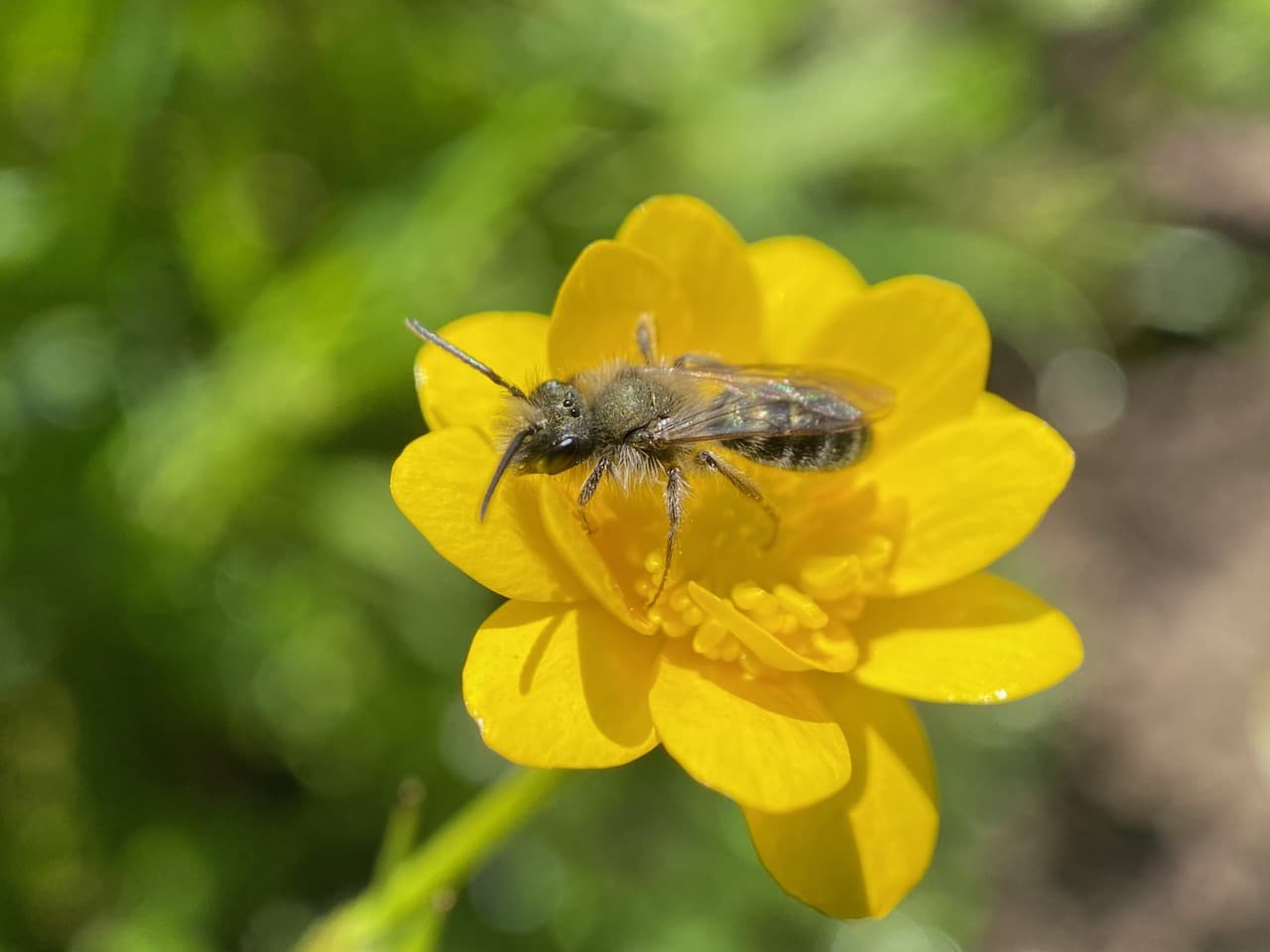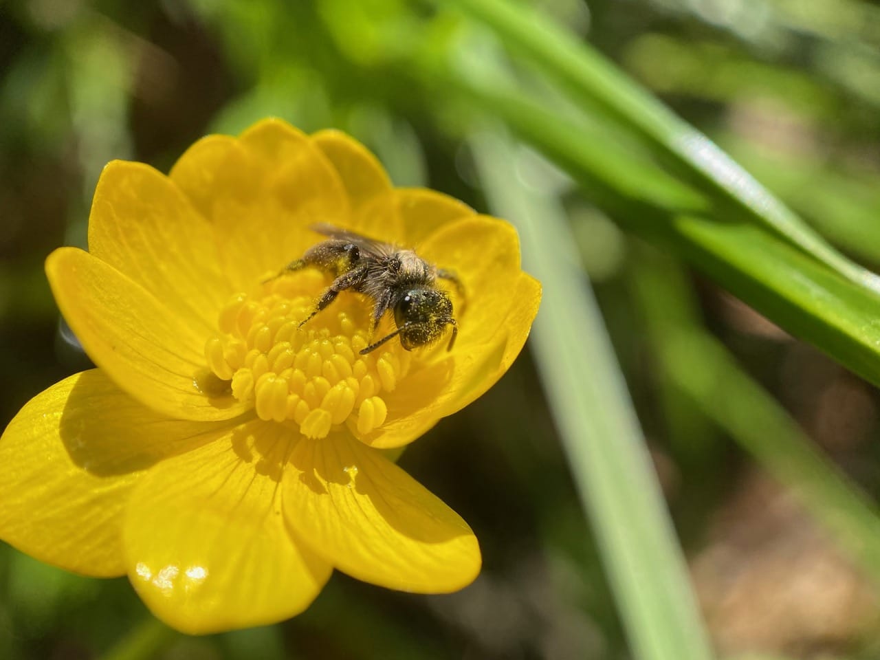 All seems to be silent as I scan each patch of buttercups. What happened to all the Mining Bees (family Andrenidae) that I saw on these flowers yesterday? Don’t the males sleep on the flowers?
