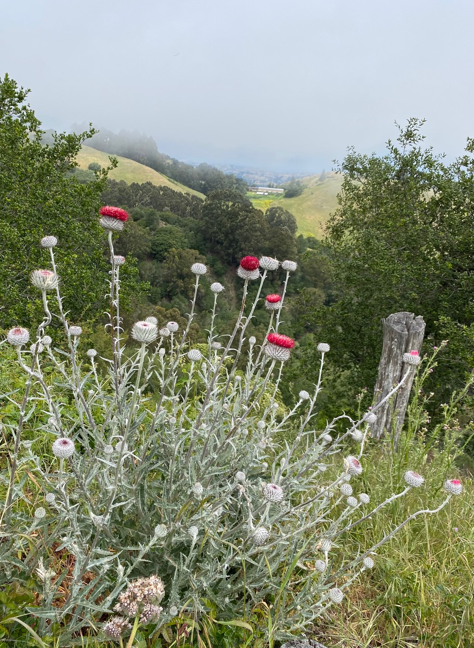 This large Cobweb Thistle on the edge of the steep slope has somehow escaped the onslaught of aphids. It is blooming magnificently.