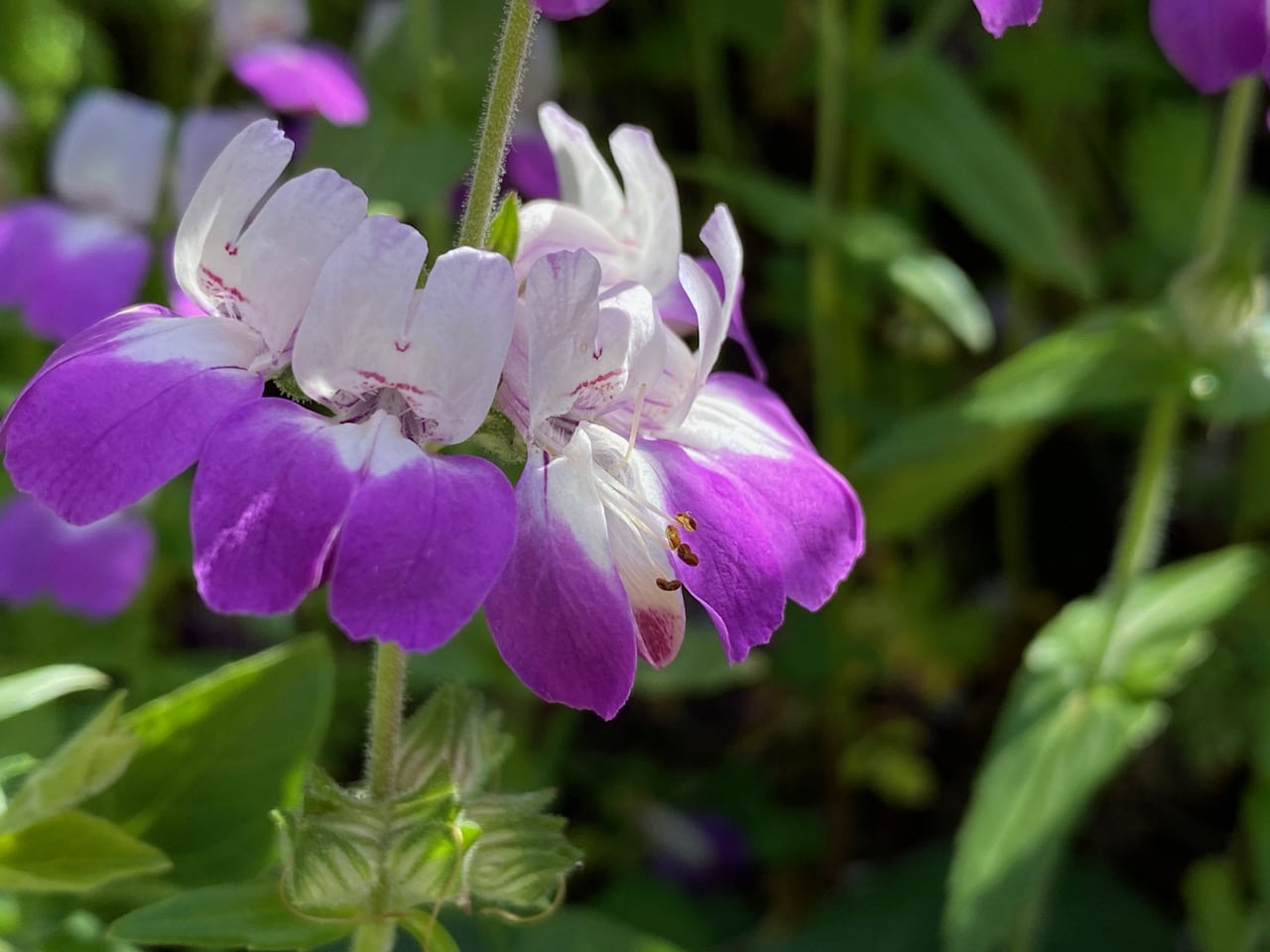 On the steep slope along Skyline Trail, a large patch of Chinese Houses, Collinsia heterophylla is blooming riotously.
