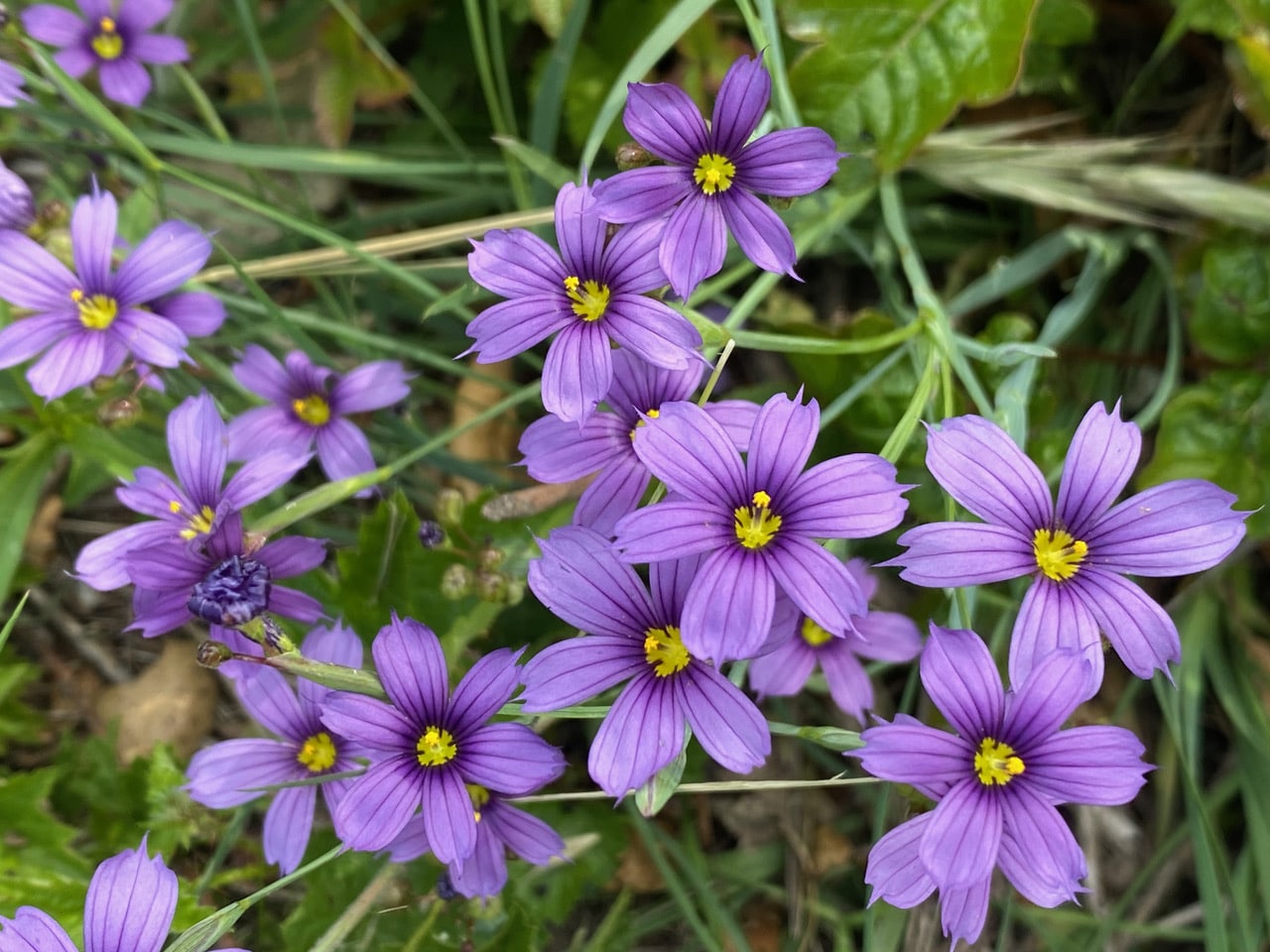 The Blue-eyed Grass, Sisyrinchium bellum has put up a spectacular show, but is somehow not getting much attention from pollinators. Too much competition from other flowers?