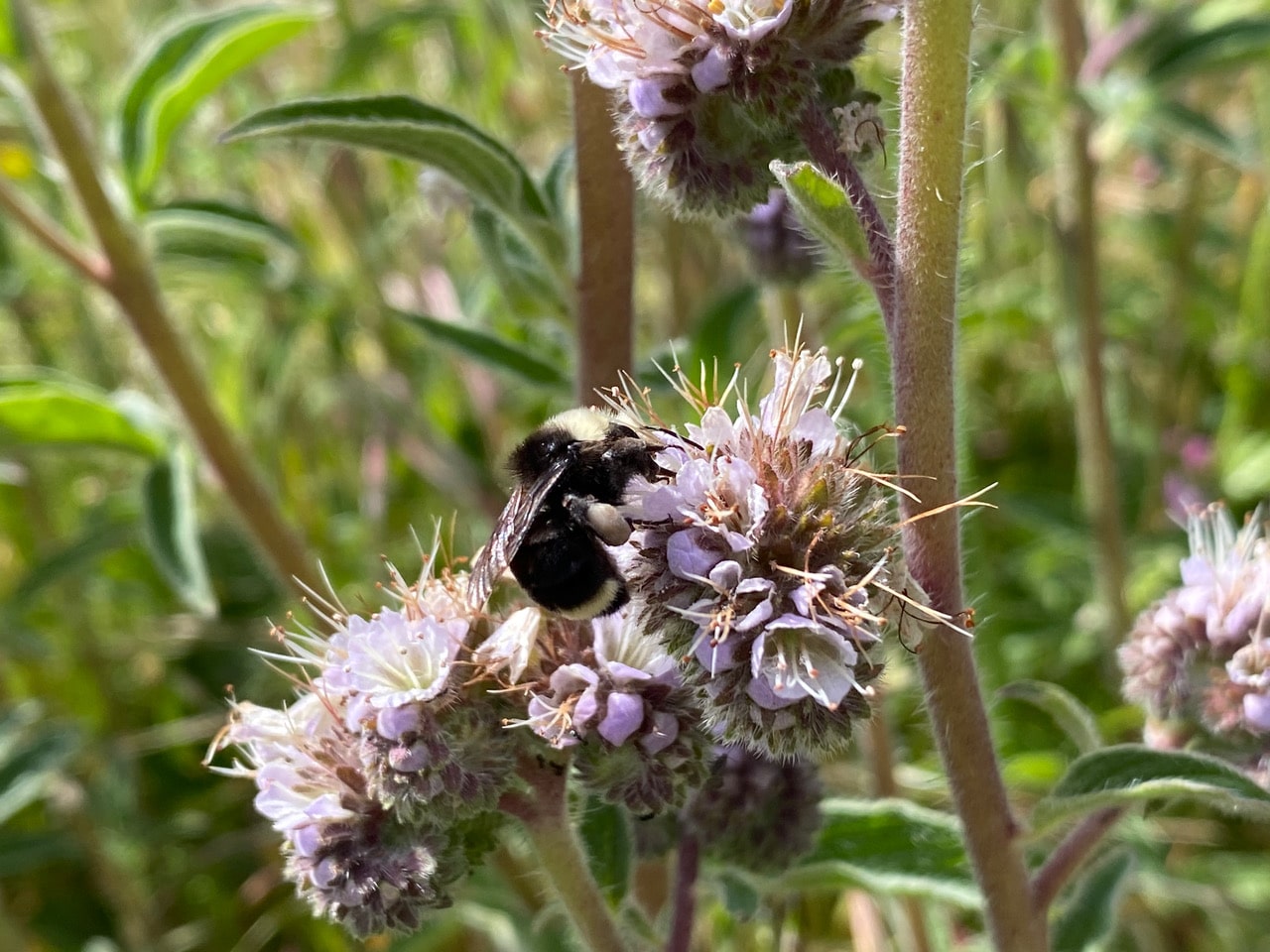 On this warm, sunny afternoon, bee activity is on full throttle in the patch of California Phacelia, Phacelia californica at Siesta Gate. It’s great to see so many Yellow-faced Bumble Bees, Bombus vosnesenskii out foraging.