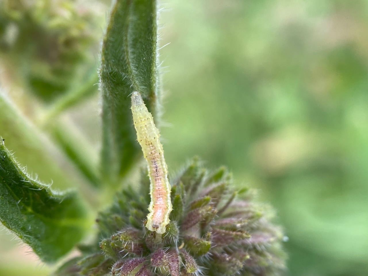 I watch as the little sightless larva clambers onto a leaf. A Hoverfly larva moves around on a Phacelia plant. – YouTube The video is blurry because of the low light level and the wind.