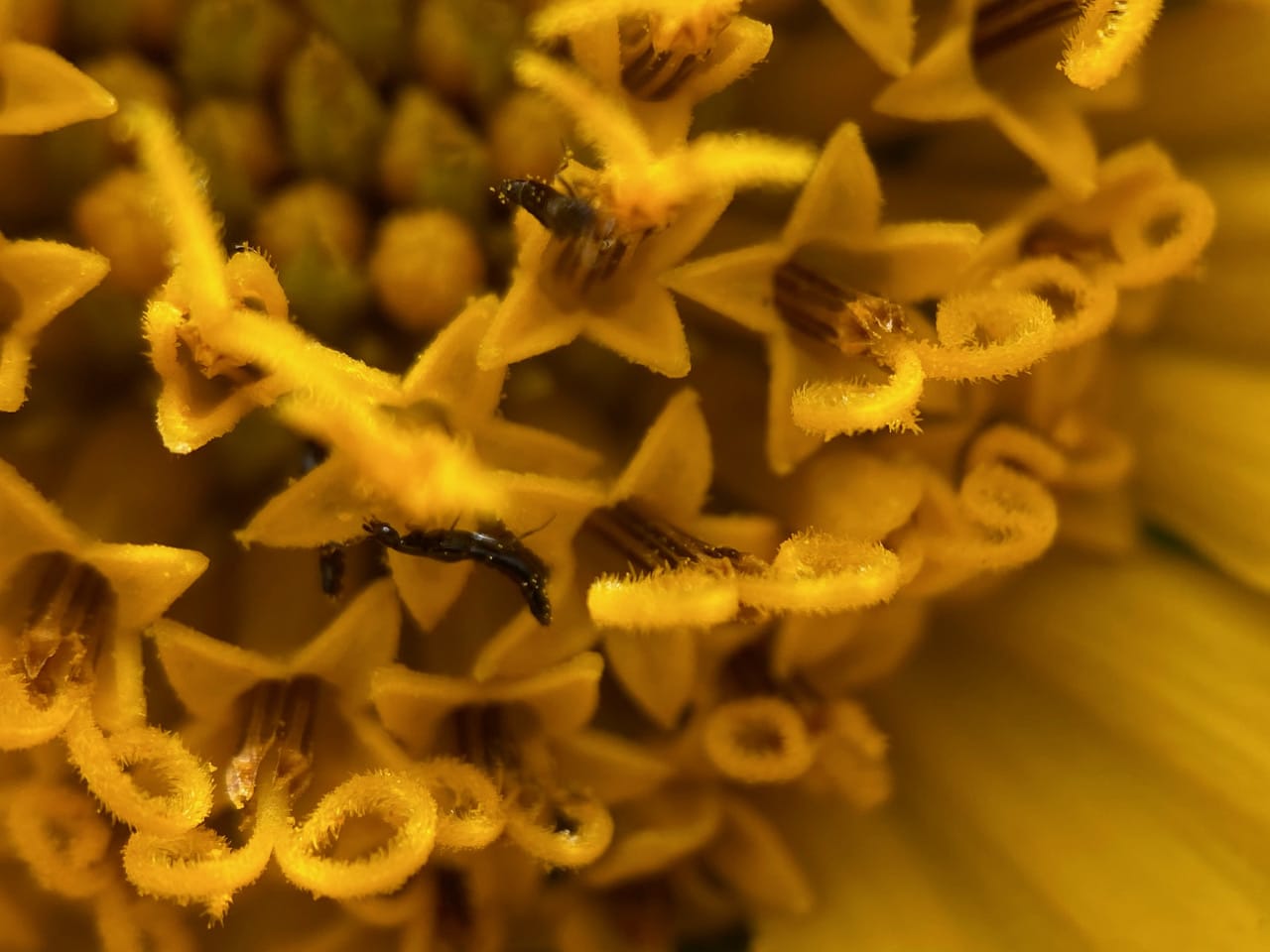 It doesn’t take long before the Cerceris wasp’s face is covered with the sticky pollen.