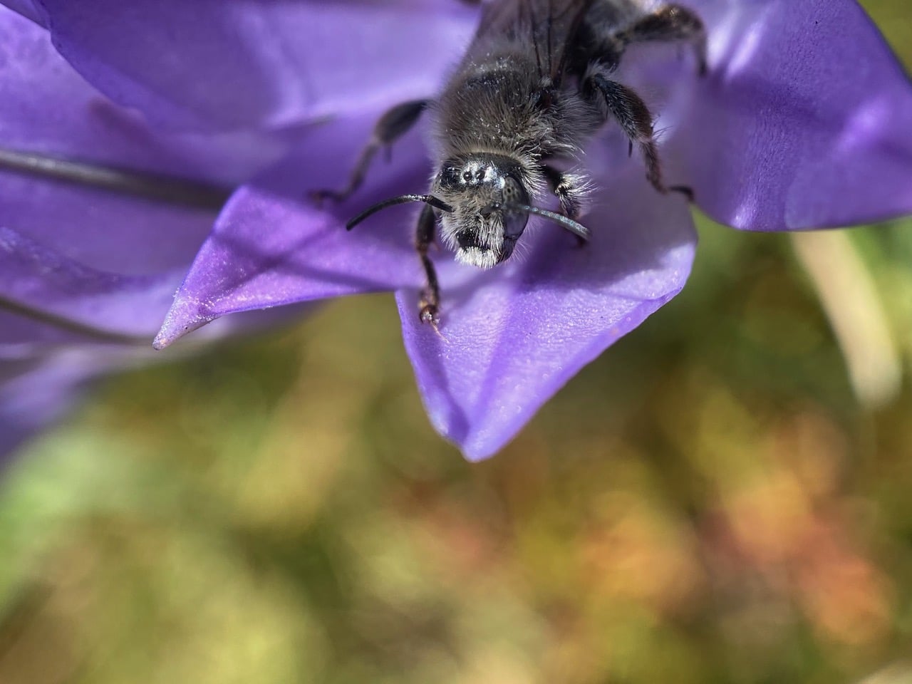 What an interesting face! The bee flies away and I can only hope that my photos have captured enough details to have the bee identified.