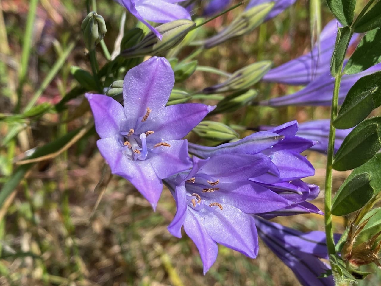 Tall and conspicuous, the umbel-like inflorescences of Ithuriel’s Spear, Triteleia laxa have emerged from the short annual grasses along the trail.