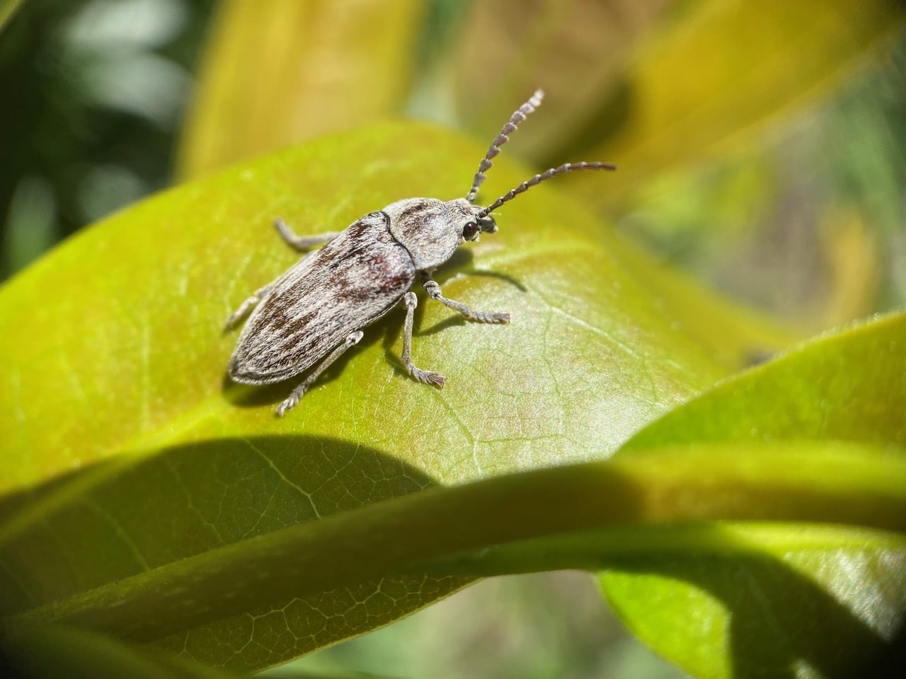 A Davidson’s Beetle, Dascillus davidsoni (family Dascillidae) is perched on a young California Bay leaf.