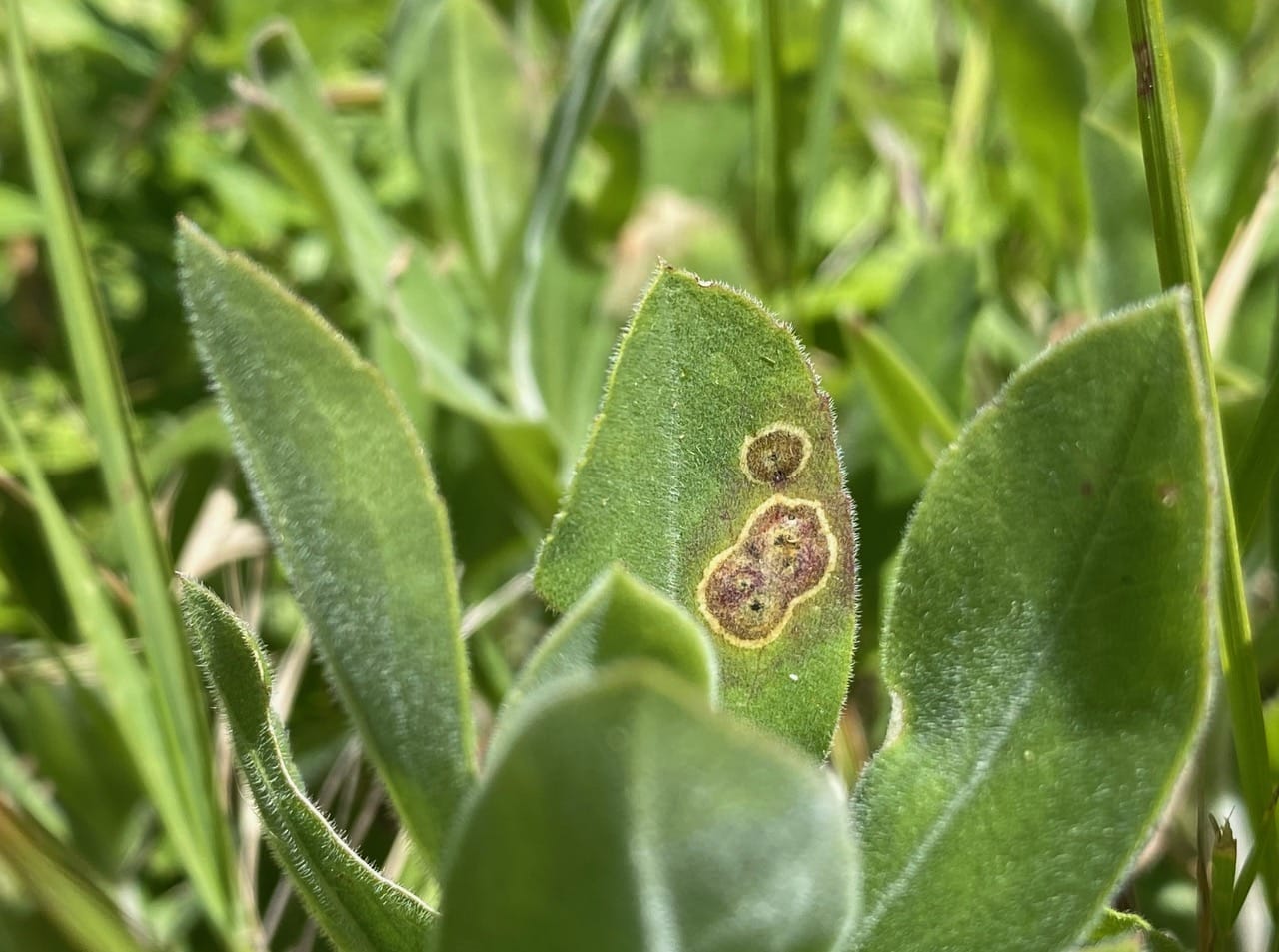 This patch of California Goldenrod just north of Diablo Bend was heavily impacted by these galls last year. So far this is the only leaf affected this year. We’ll see…