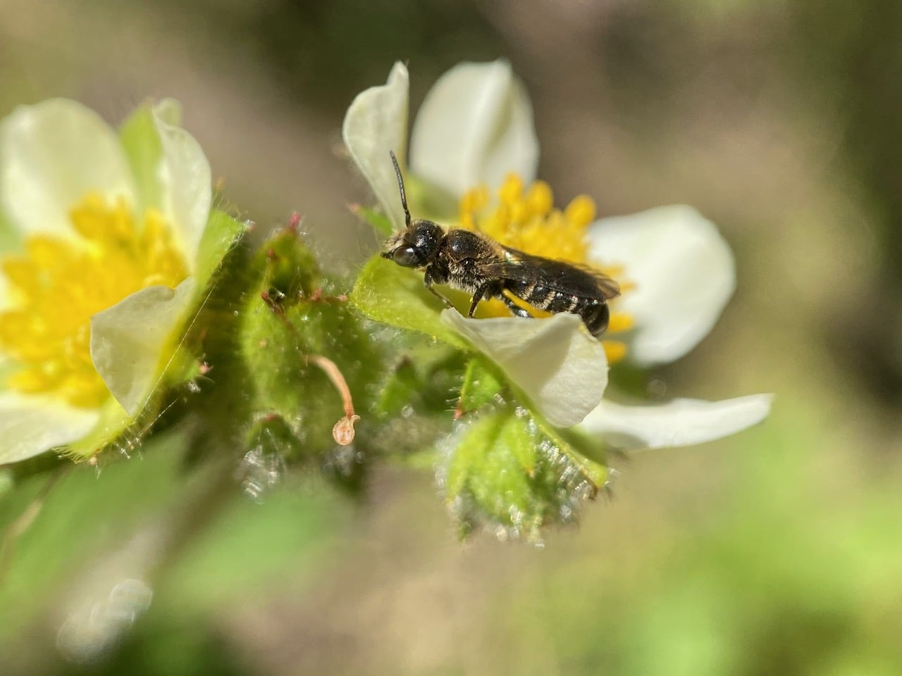 Wow, that’s an interesting face! Not only is the bee new to me, I can’t even place it in a family! iNaturalist’s AI places the bee in the subgenus Neochelostoma, genus Chelostoma (family Megachilidae).