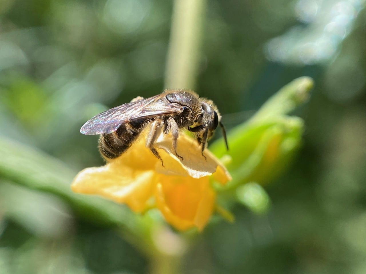 Besides the facial markings, the Masked Bees also have yellow markings on their legs.