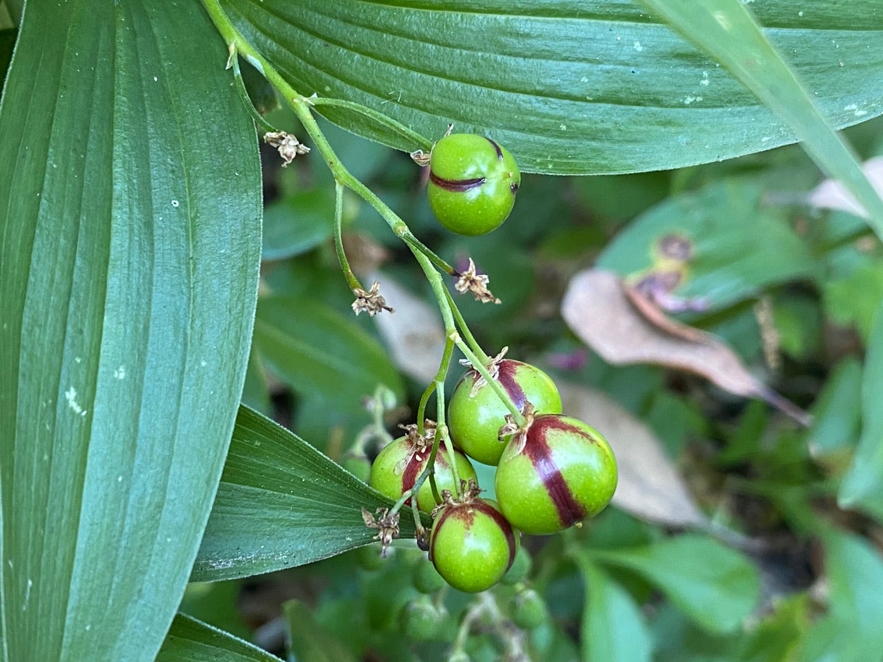 Ooh, the Star-flowered Lily-of-the-Valley (formerly False Solomon Seal), Maianthemum stellatum has gone to fruit!