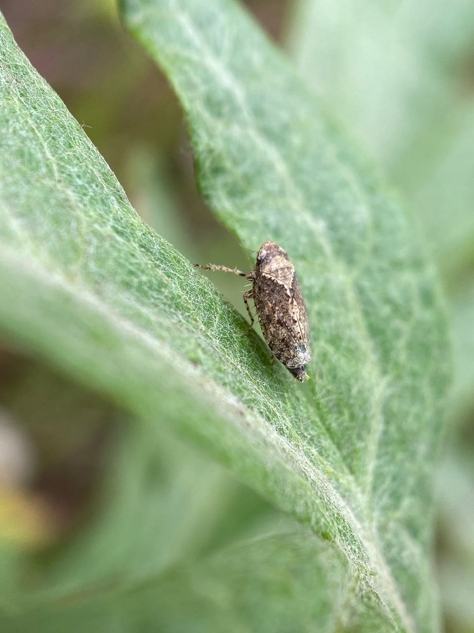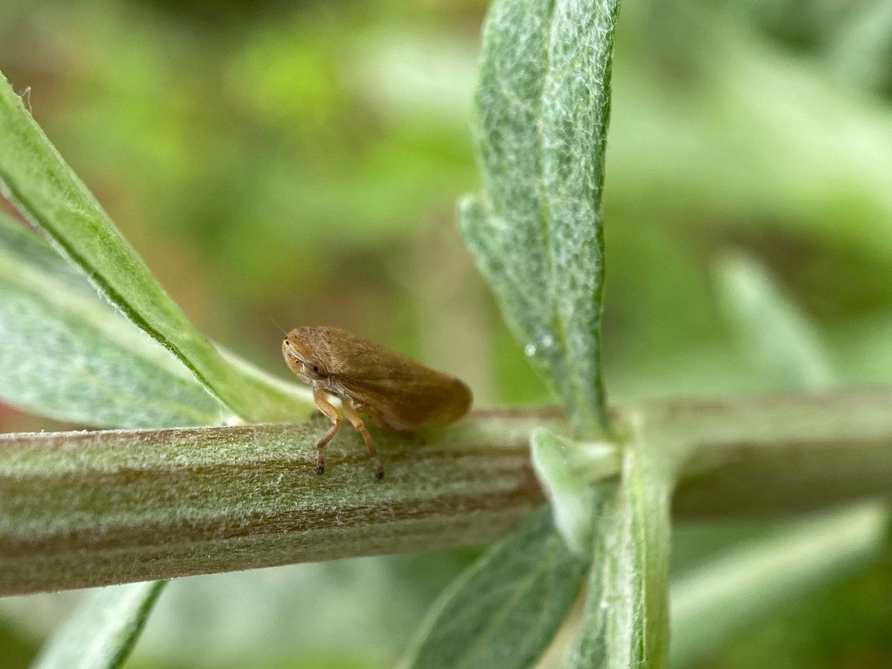 Hey, another cryptic creature on the California Mugwort – a Froghopper or Spittlebug! This one actually looks like a frog! iNaturalist has identified it to the genus Philaenus (family Aphrophoridae).