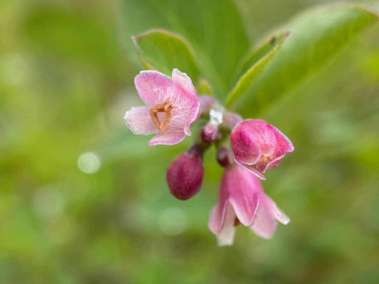 Since there’s hardly any insect activity, I settle down to take some close-ups of the Snowberry flowers in peak bloom along Skyline Trail. Ahh, I can see the five stamens behind the white hairs inside the corolla. What function do the hairs serve? To exclude certain insects?