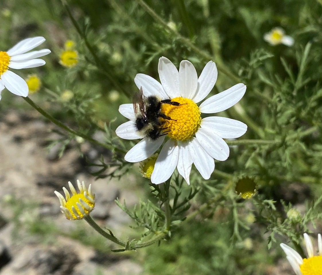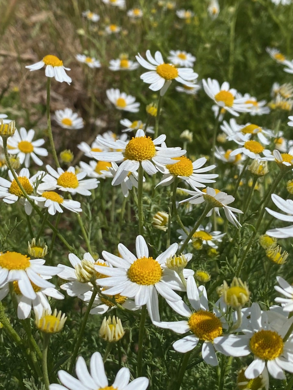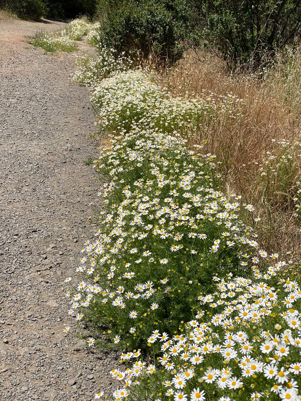 English Daisies are blooming profusely along certain sections of the trail. Were these intentionally seeded to control noxious weeds?
