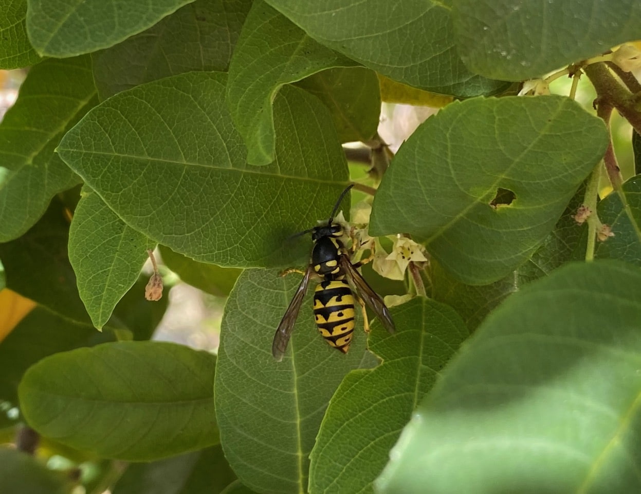 Yellowjacket is the common name for predatory social wasps of the genera Vespula and Dolicovespula (family Vespidae). Yellowjackets are social hunters living in colonies containing workers, queens, and males (drones). Colonies are annual with only inseminated queens overwintering. Queens emerge during the warm days of late spring or early summer, select a nest site, and build a small paper nest in which they lay eggs. They raise the first brood of workers single-handedly. Henceforth the workers take over caring for the larvae and queen, nest expansion, foraging for food, and colony defense. The queen remains in the nest, laying eggs. Later in the summer, males and queens are produced. They leave the parent colony to mate, after which the males quickly die, while fertilized queens seek protected places to overwinter. Parent colony workers dwindle, usually leaving the nest to die, as does the founding queen. In the spring, the cycle is repeated.