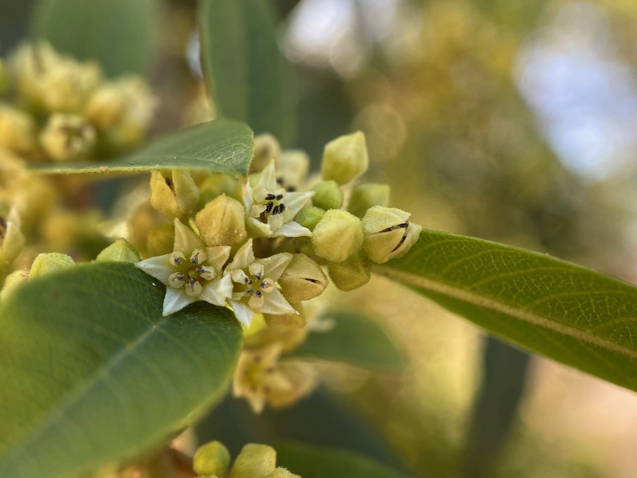 The large shrub of Coffeeberry, Frangula californica is blooming in front of the FOSC Native Plant Nursery. The small, greenish-yellow flowers are inconspicuous, but apparently offer nectar attractive to many insects.