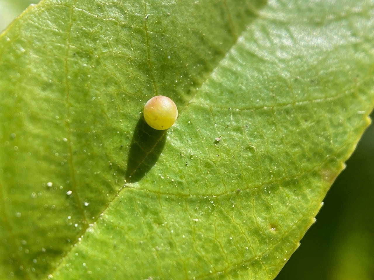 Yep, I am almost sure that a mama Pale Swallowtail has laid this egg on the leaf. Yay!