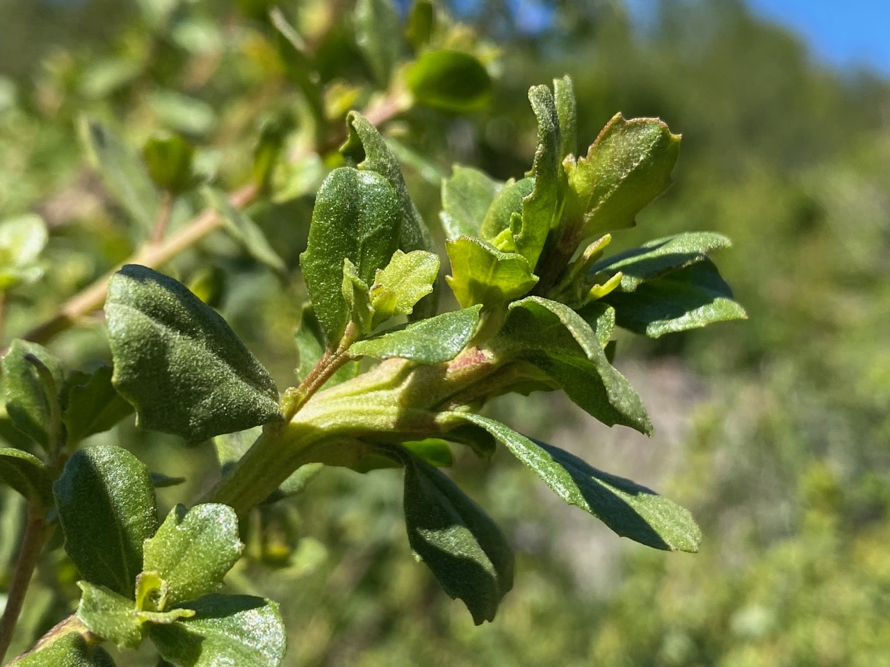 The Coyote Brush, Baccharis pilularis along the trail is vibrant with fresh new leaves. There are also new galls developing on many of the stem tips.