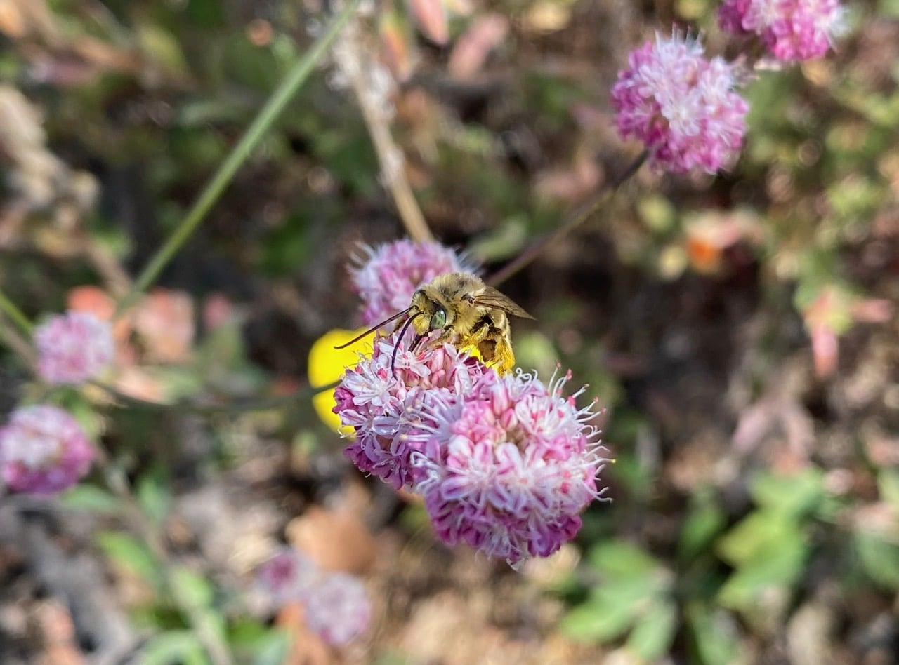 Hey, what’s that female Melissodes doing on an inflorescence of Nude Buckwheat, Eriogonum nudum?! I have been observing these bees every summer, and I have never seen a female on a flower other than an Asteraceae (sunflower family).