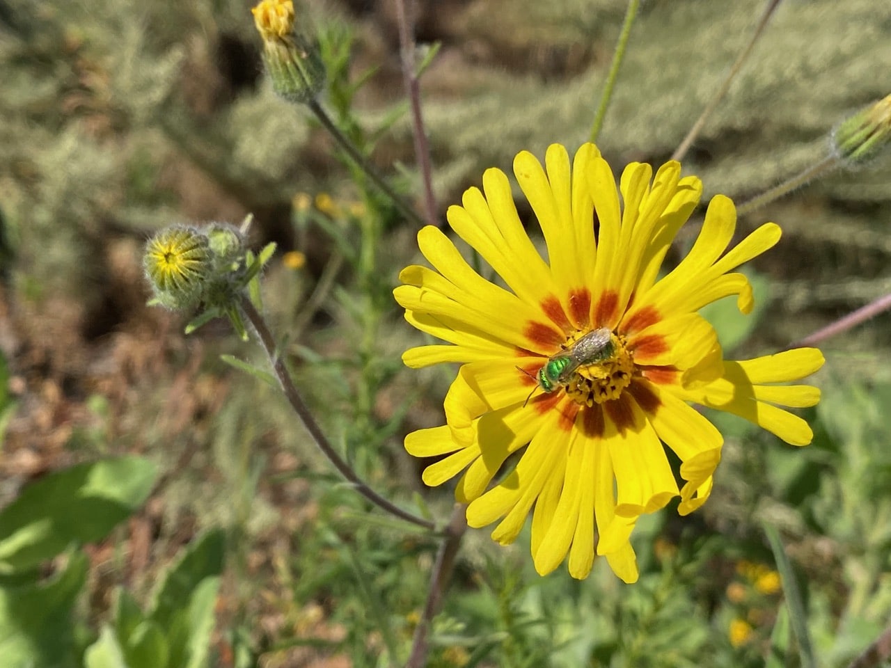 I watch a male taking nectar from a tarweed flowerhead…