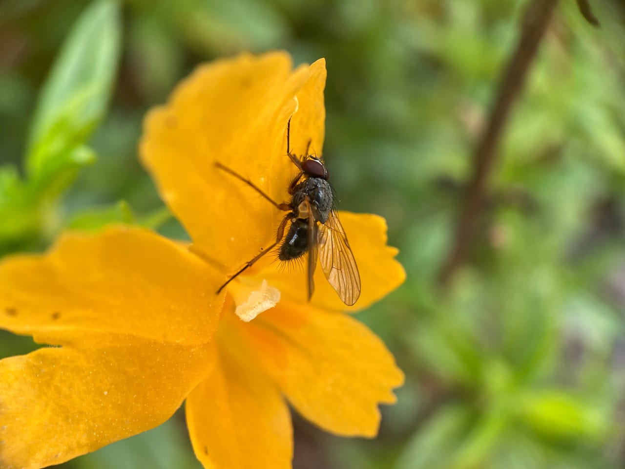 This fly is commonly seen visiting the Sticky Monkeyflowers, but I am not getting anywhere trying to have it identified. It has orange-colored double calypters under each wing.