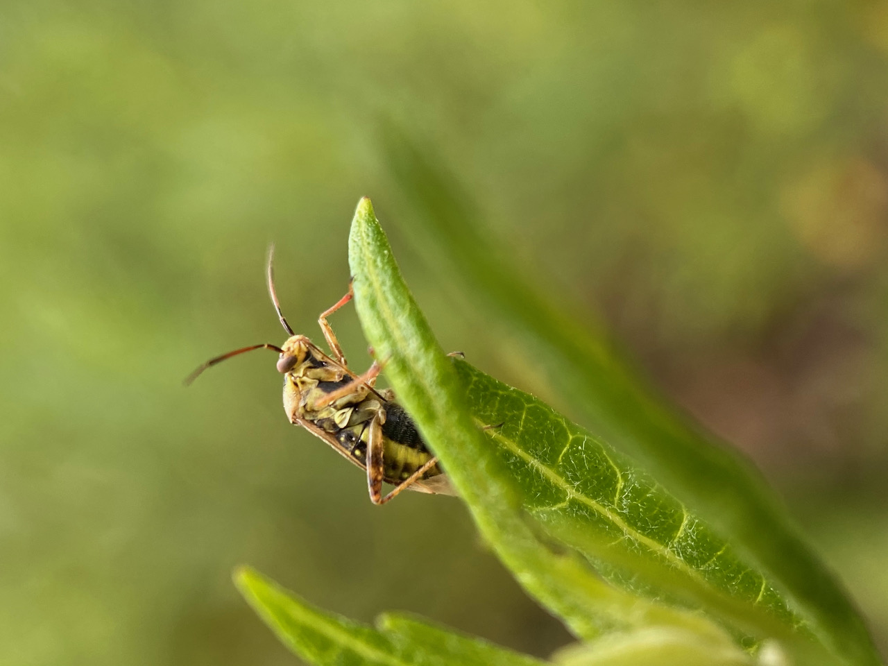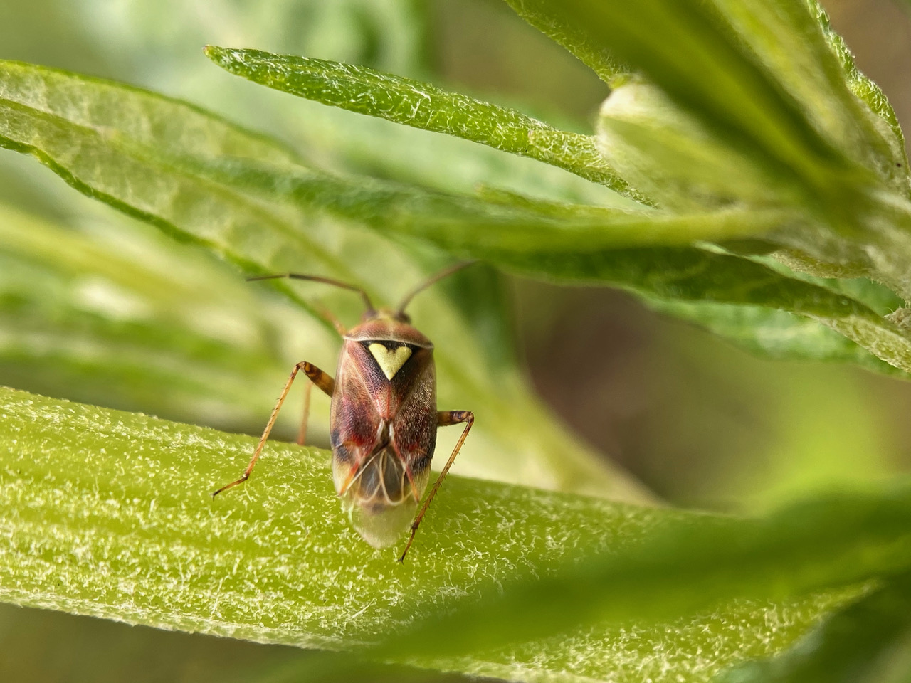 The Lygus Bug pauses on a top leaf of Mugwort, giving me a clear view of its rostrum that is folded under its body.