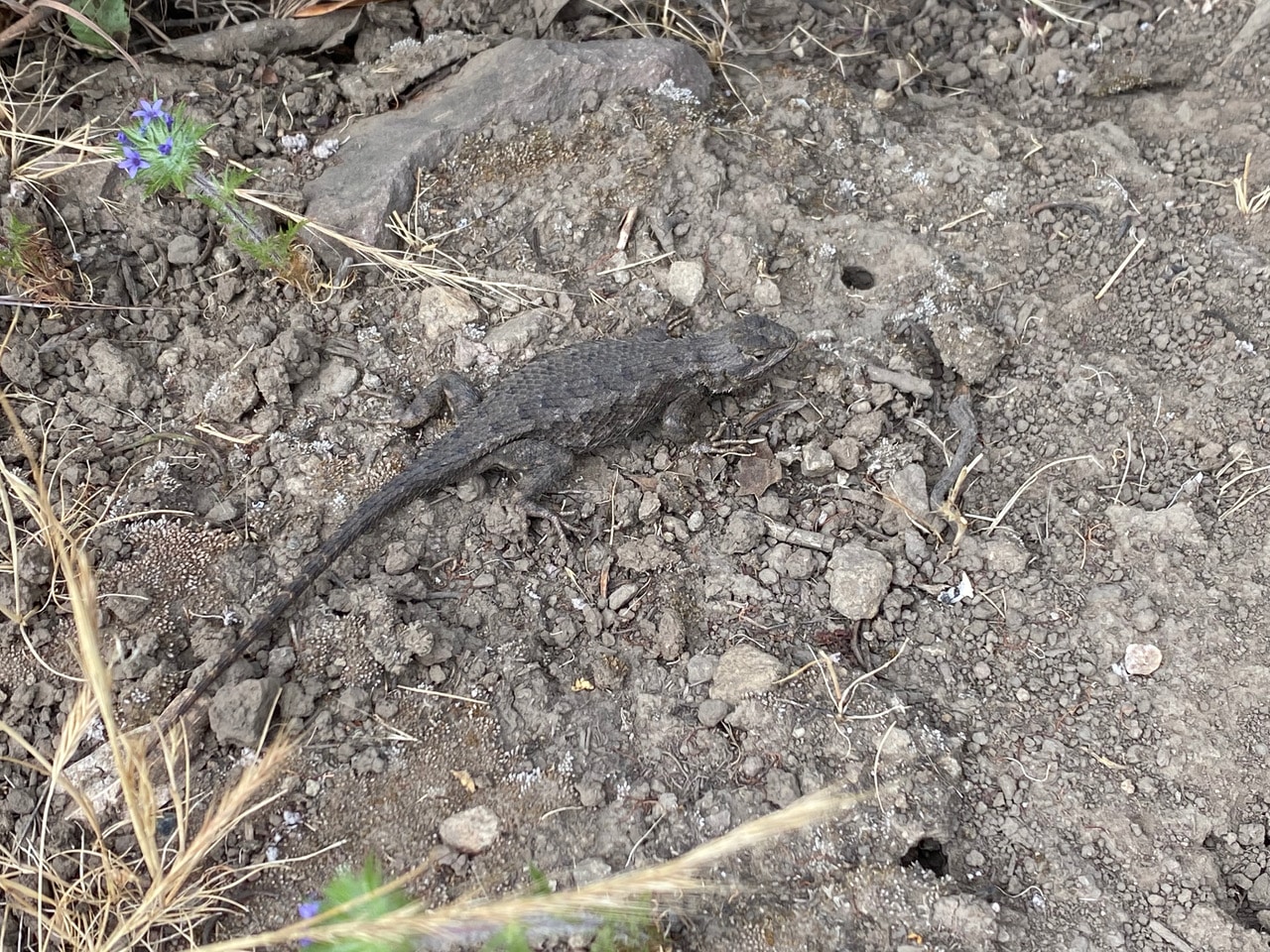 A beautifully marked Western Fence Lizard greets me on the side of the trail. Is it freshly molted?
