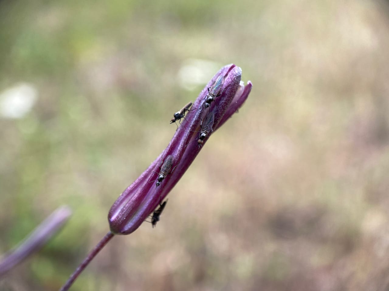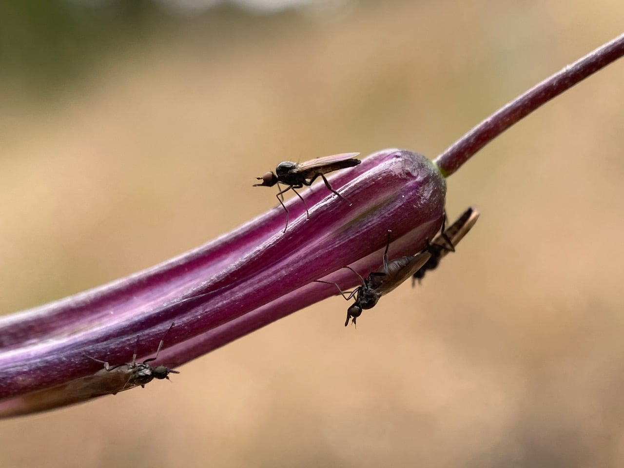 Here’s another spent Soap Plant flower with numerous Dance flies perched on the twisted petals. The fly at the end here looks like a gravid female.
