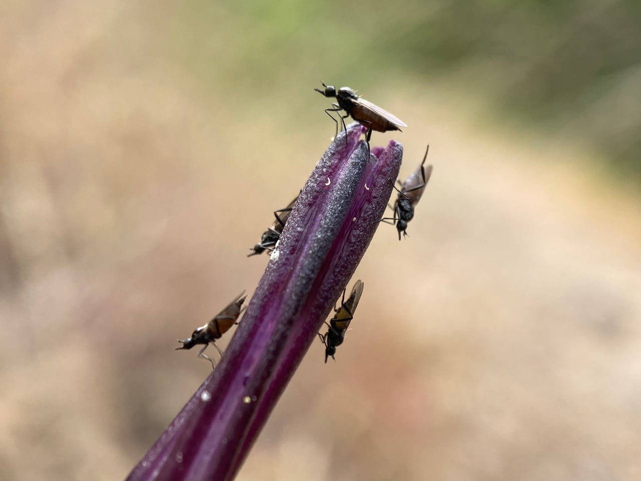 More Dance Flies everywhere on the withered flowers. I will check back later when new flowers open.