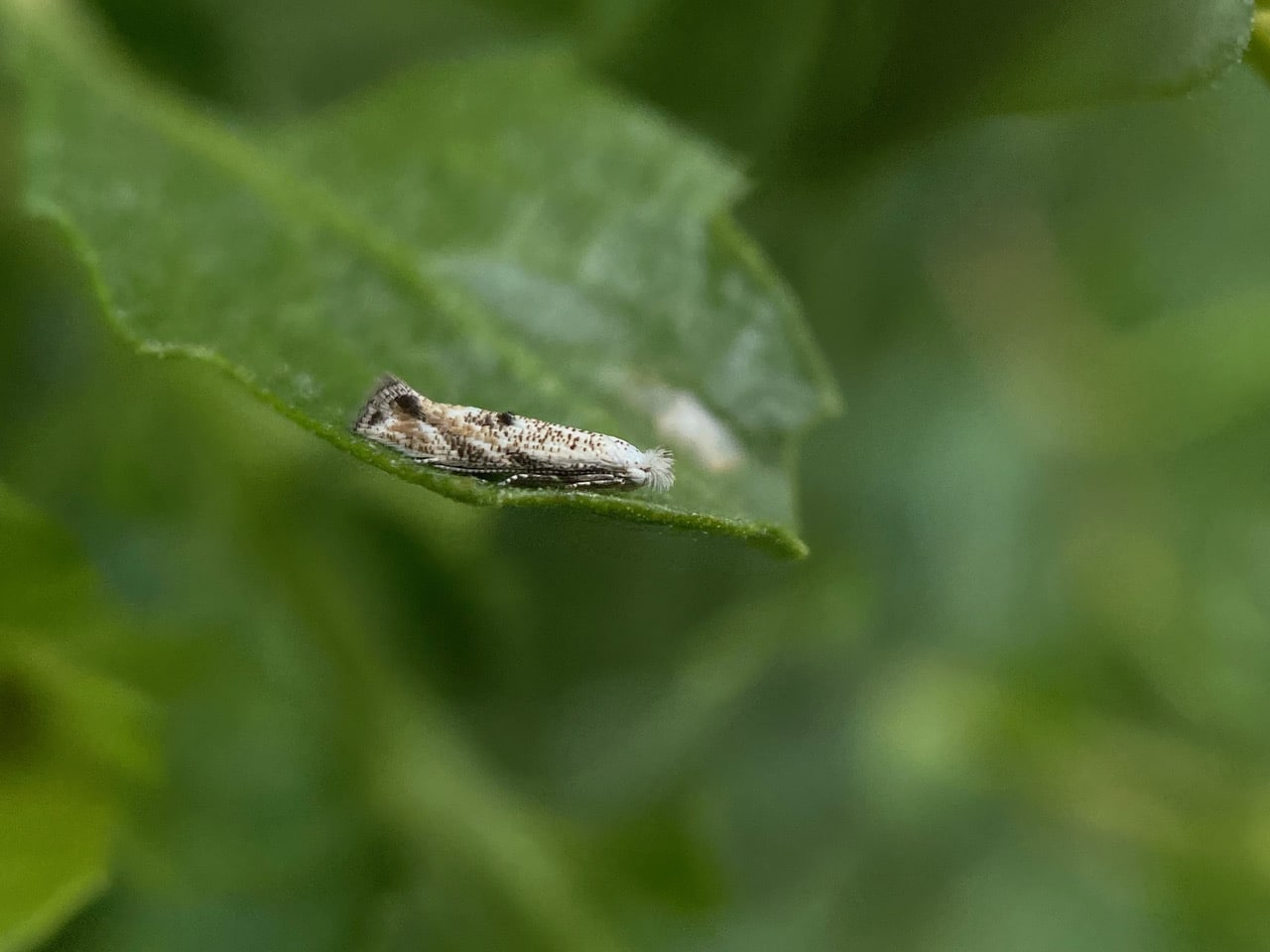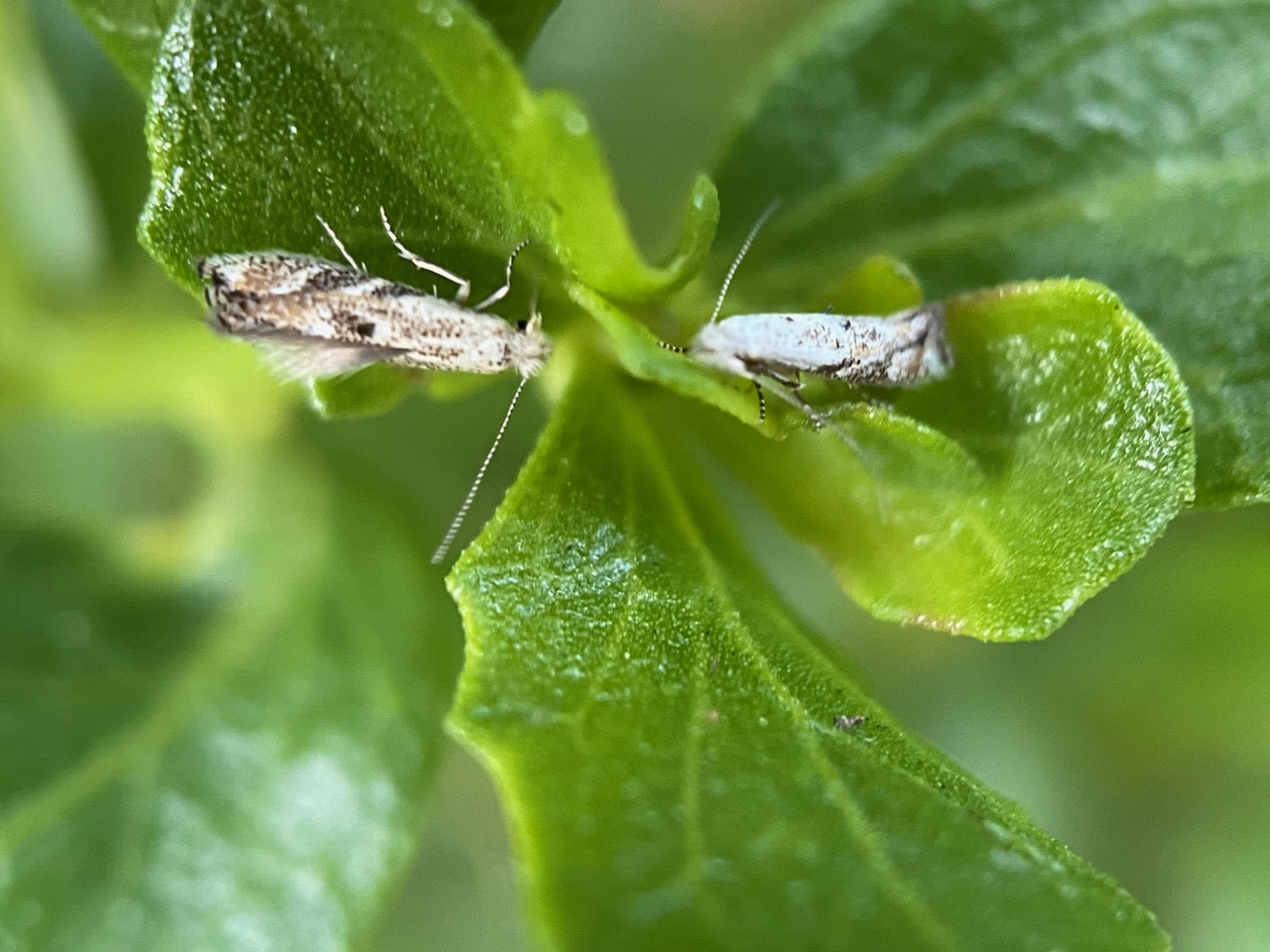 The moths appear to be Twirler Moths in the family Gelechiidae. They are elongate moths with narrow bodies, and they run around with their wings folded. There’s a mob of white hair on top of the head.