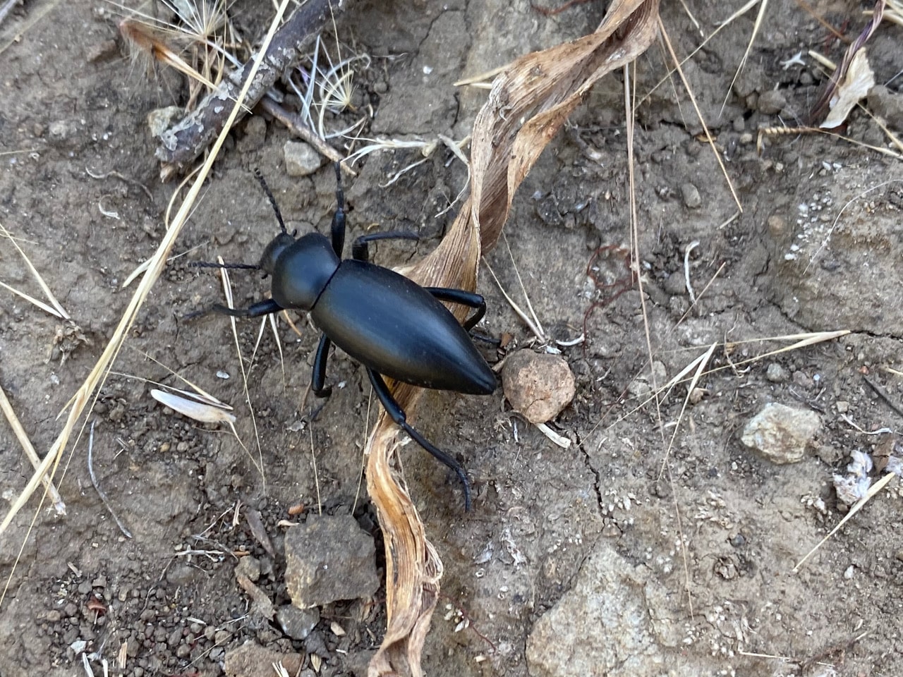 To add to the excitement around the Soap Plants, a Darkling Beetle, Eleodes acuticauda (family Tenebrionidae) saunters by, its abdomen held high.