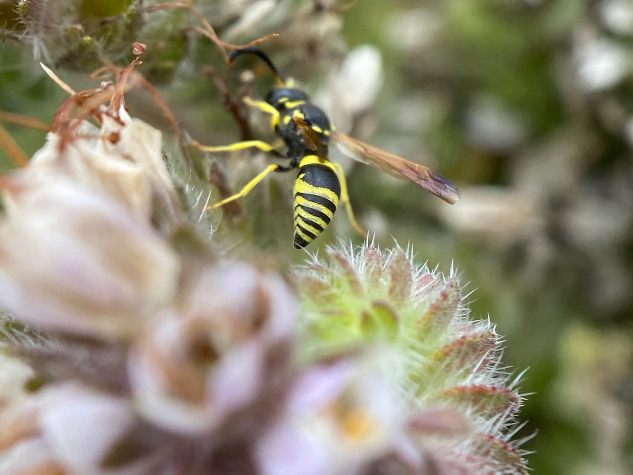 Ooh! Unmistakable butt of a wasp! Note that it is relatively smooth and hairless.