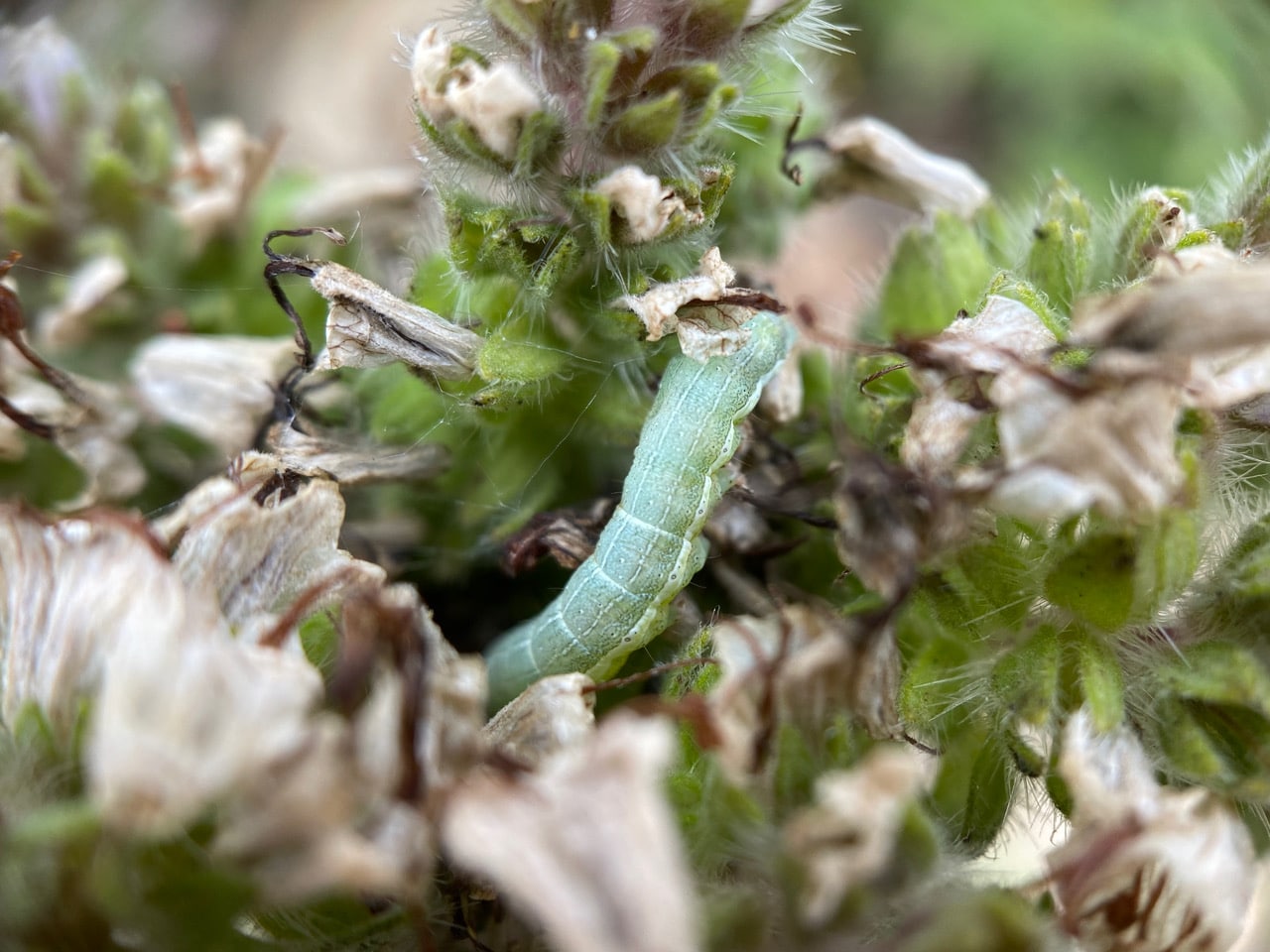 This Bristle Fly, Siphona sp.(family Tachinidae) will be happy to find the caterpillar.