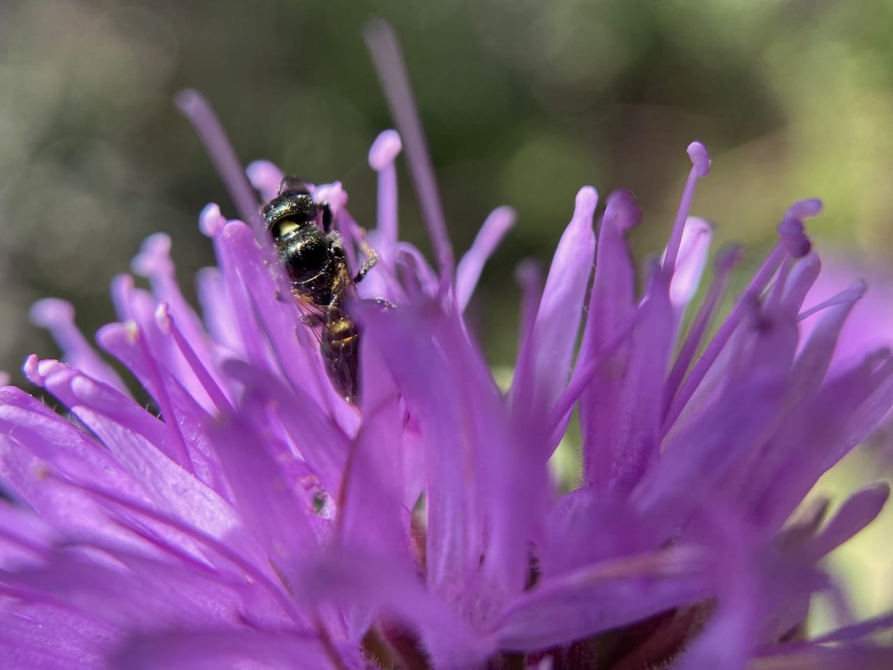 Her hairs appear more yellow than the males’, or are they coated with yellow pollen?