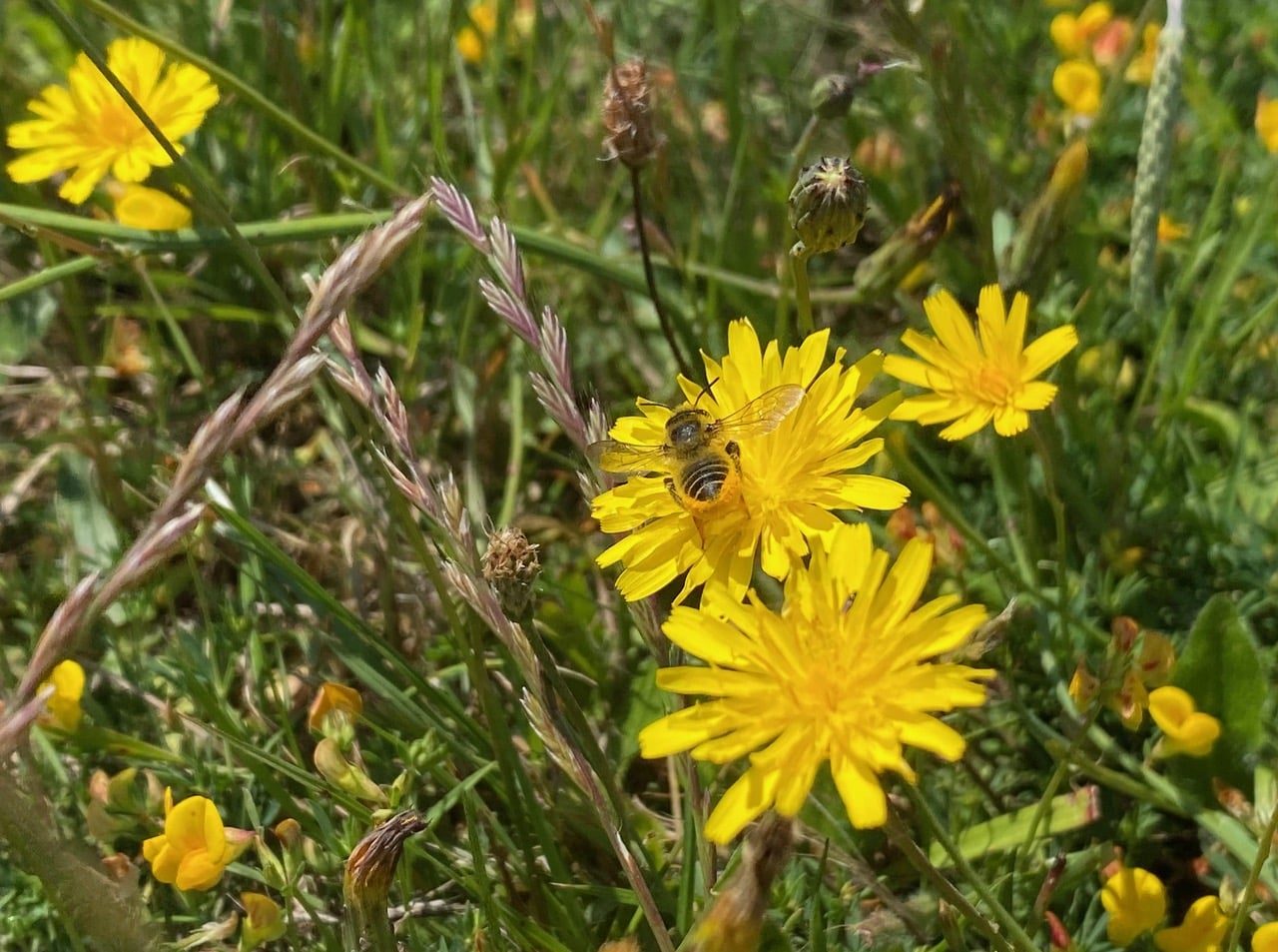 Then she’s back on the Catsear flowers. It’s endless fun watching the Leafcutter bees.