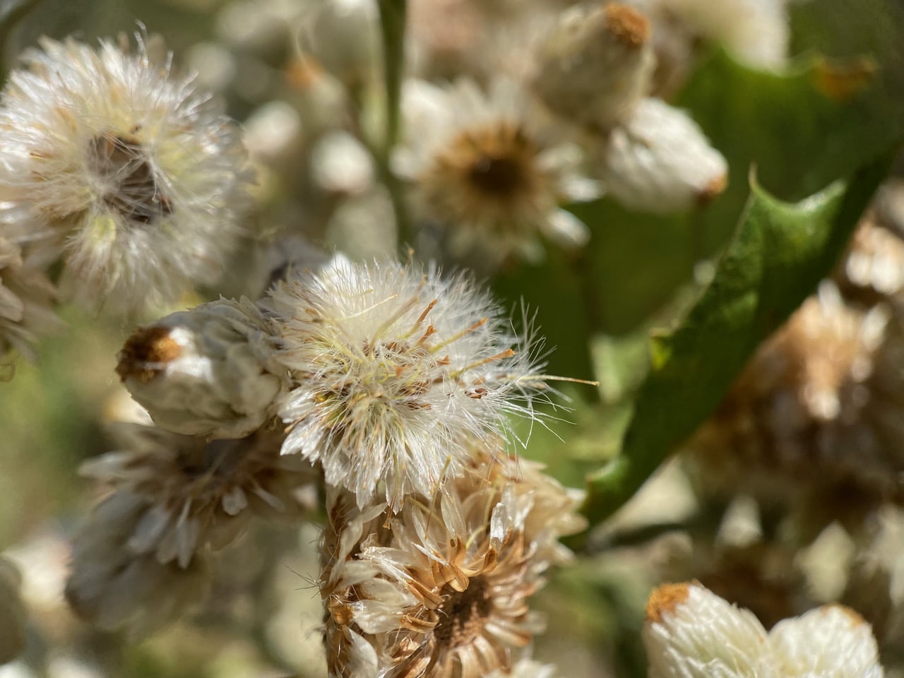 The California Everlasting, Pseudognaphalium californicum has gone to seed! Many flowerheads have opened up to disperse seeds attached to silky plumes (pappus).