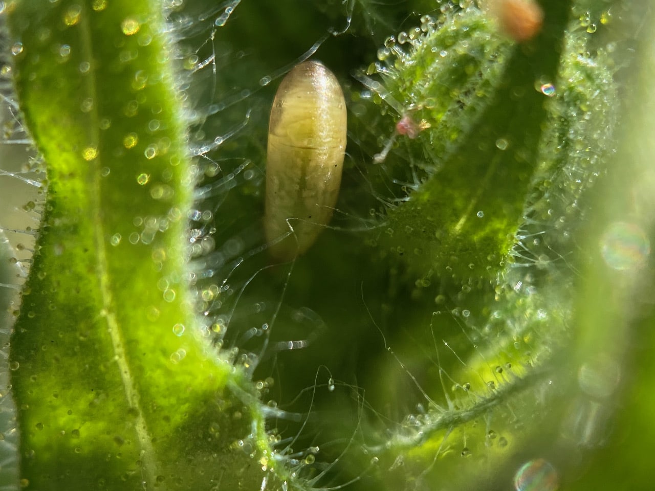 I wonder who laid those honey-colored eggs on the underside of a leaf of Coast Tarweed, Madia sativa. Since the plant is habitat for several bugs (order Hemiptera), it’s probably one of them. Scentless Plant Bug (family Rhopalidae)?
