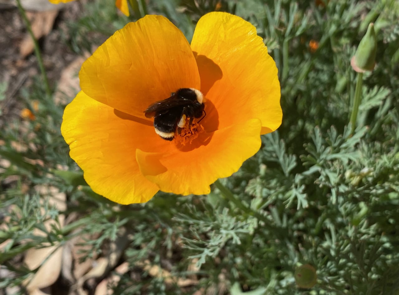 While many of the Calfornia Poppy, Eschscholzia californica have gone to seed, I’m glad there are still flowers to support the pollen needs of bumble bees this late in the season.